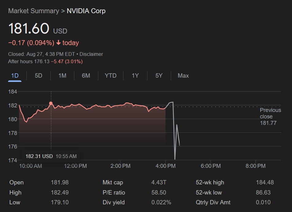 Компания NVIDIA недавно объявила о финансовых результатах за второй квартал финансового года 2026 года на своей платформе по связям с инвесторами. По итогам квартала NVIDIA сообщила о фактической выручке в размере примерно 46,74 миллиарда долларов, превысив прогнозируемые 45,91 миллиарда долларов, названные аналитиками с Уолл-стрит. Что касается прибыли на акцию за тот же период, скорректированная цифра составила около 1,05 доллара, превзойдя ожидаемые 0,98 доллара, но не достигнув неофициального прогноза в 1,06 доллара.