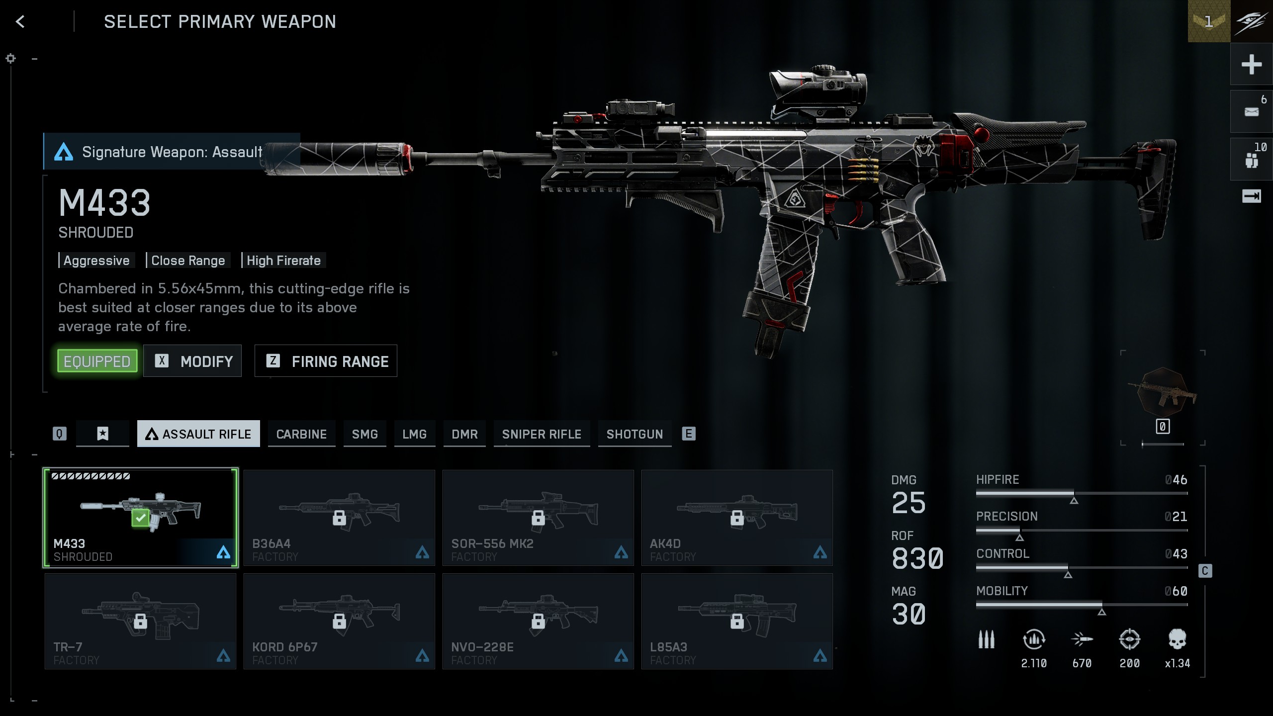 Улучшение Shrouded предназначено специально для штурмовой винтовки M433, а улучшение Drop Shadow – только для снайперской винтовки M2010 ESR. Вы можете найти эти улучшения в следующем меню: