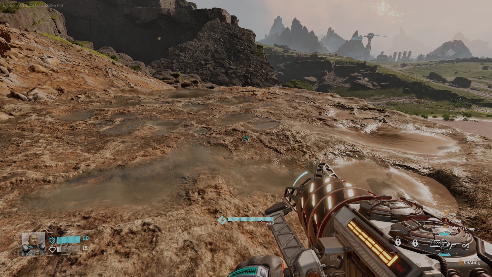 Вы увидите белое здание вдалеке, но не идите в ту сторону. Вместо этого поищите коричневатые, грязеподобные полки на земле справа от вас. Эти полки обозначают место, где вы можете найти руду Кальция. Вероятно, вы будете слишком далеко от своей стартовой базы, чтобы до неё добраться, поэтому вам нужно будет построить новую инфраструктуру для сбора руды.