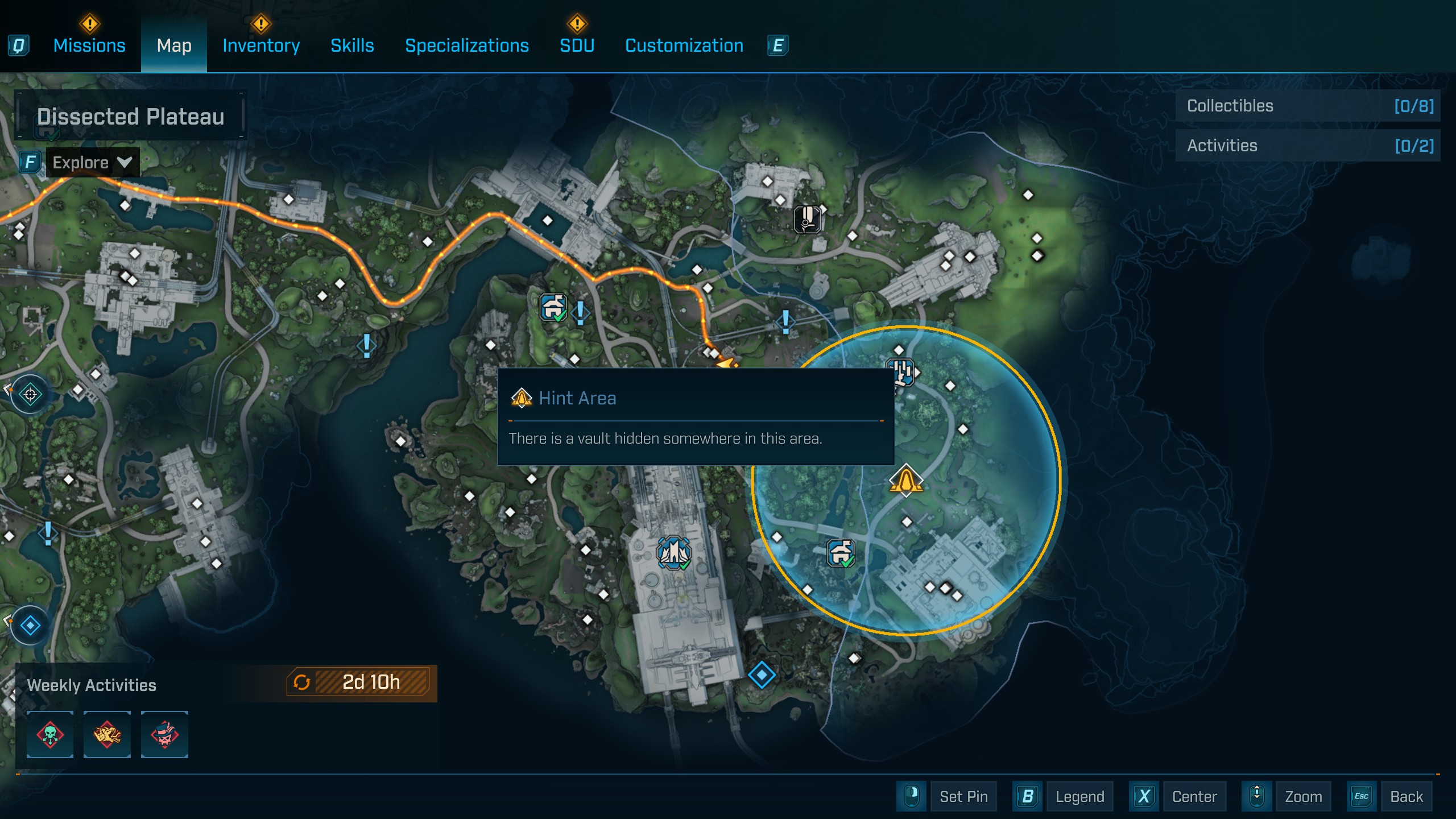 Чтобы превратить регион в ключ от хранилища, соберите все фрагменты ключа, разбросанные вокруг. Однако помните, что нельзя объединять более одного фрагмента из Затенённых полей с фрагментом из Хребта Терминуса. Когда вы соберете все фрагменты в области, на вашей карте появится метка, указывающая местонахождение хранилища. Подобно поиску фрагментов, индикатор на вашем экране поможет вам найти хранилище и покажет, насколько вы к нему приближаетесь.
