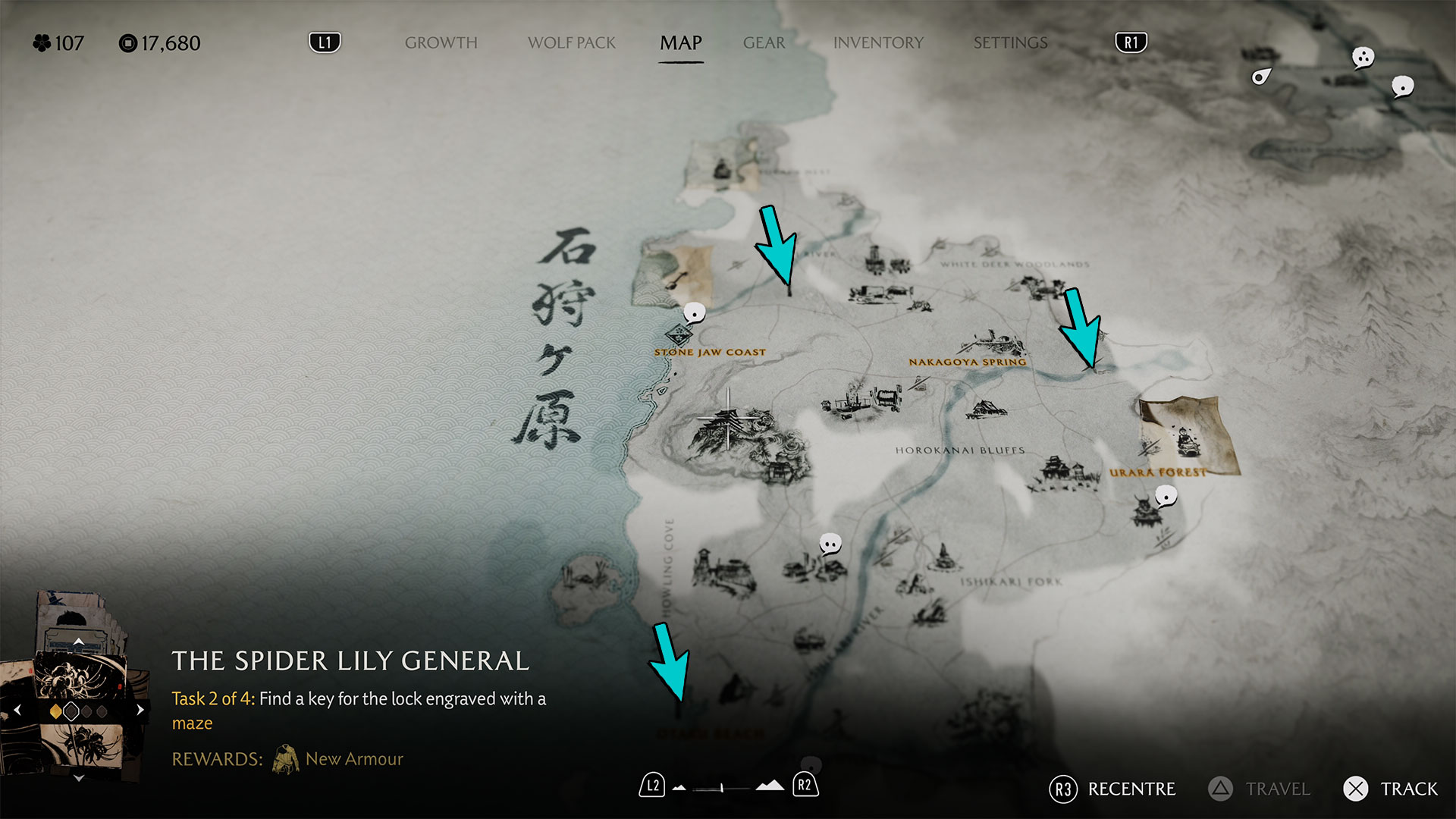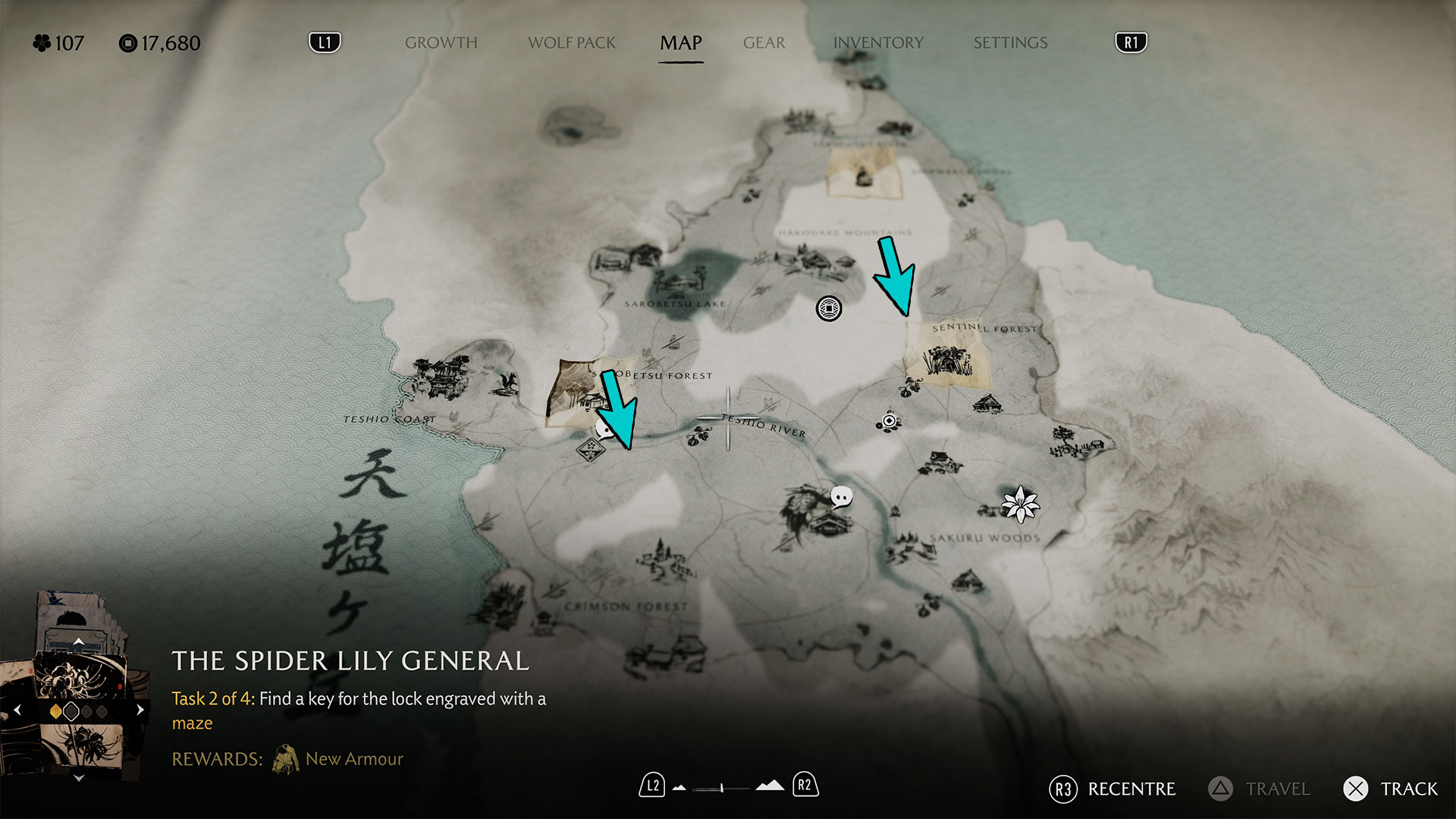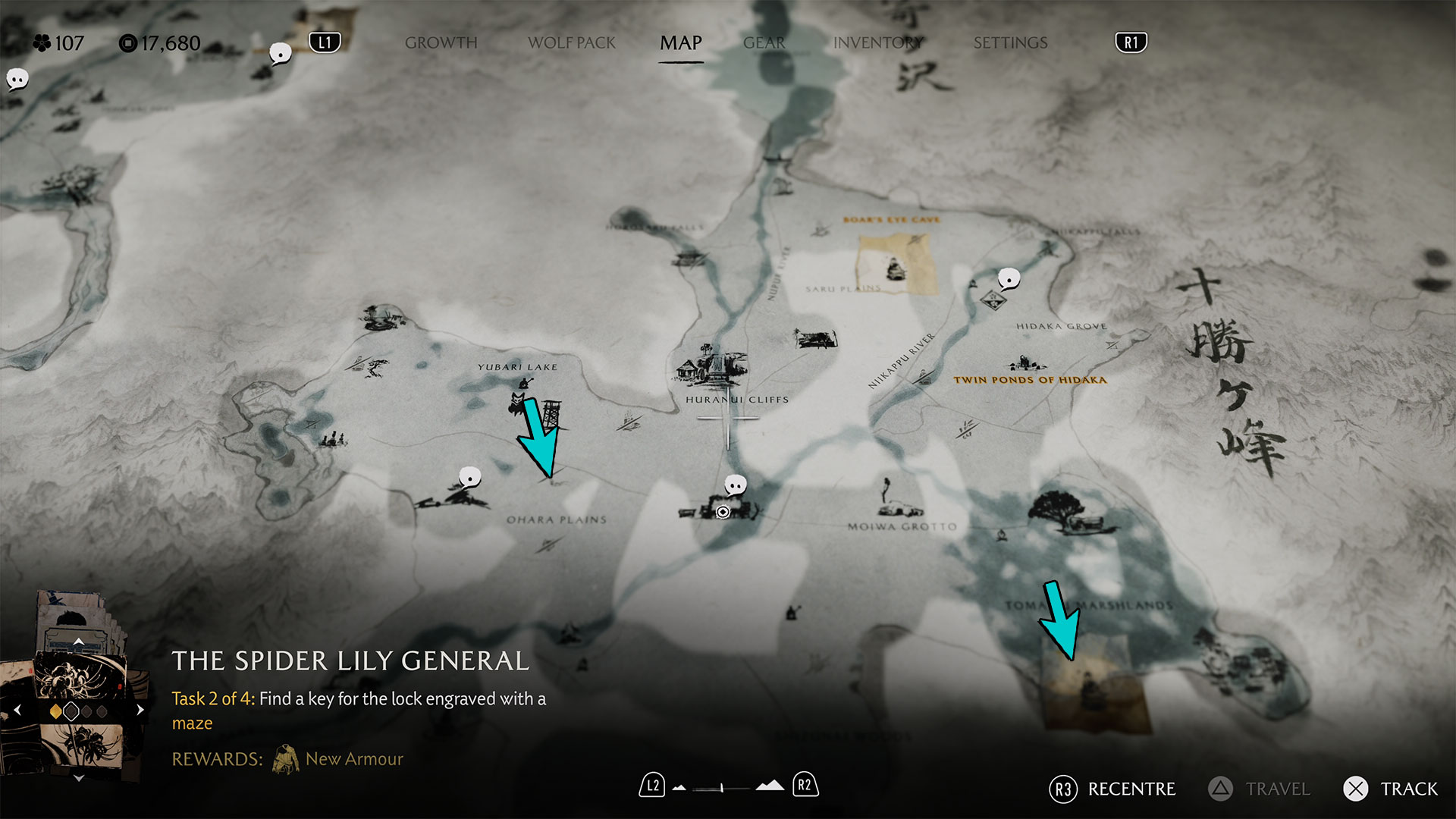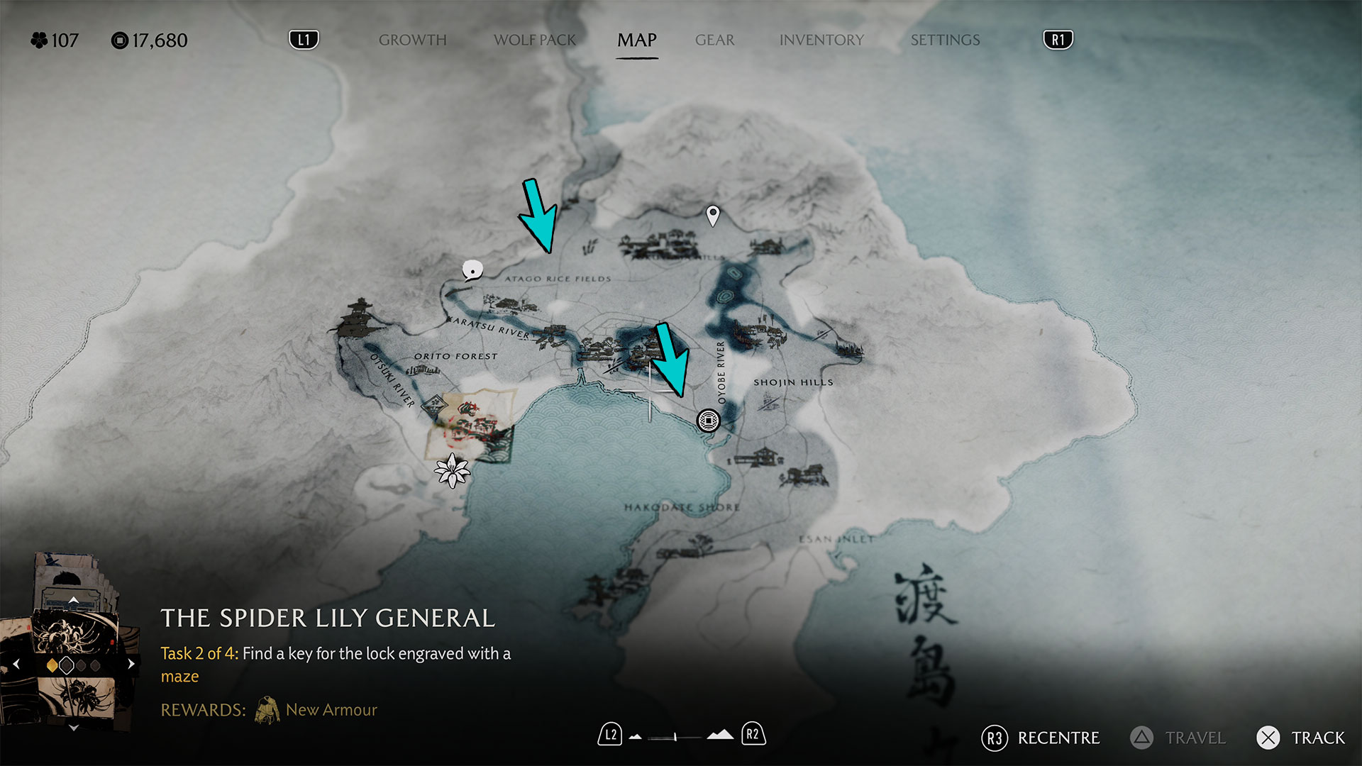 - The Howling Pack Sumi-e находится к востоку от хребта Teshio и награждает повязкой Headband of the Wild.