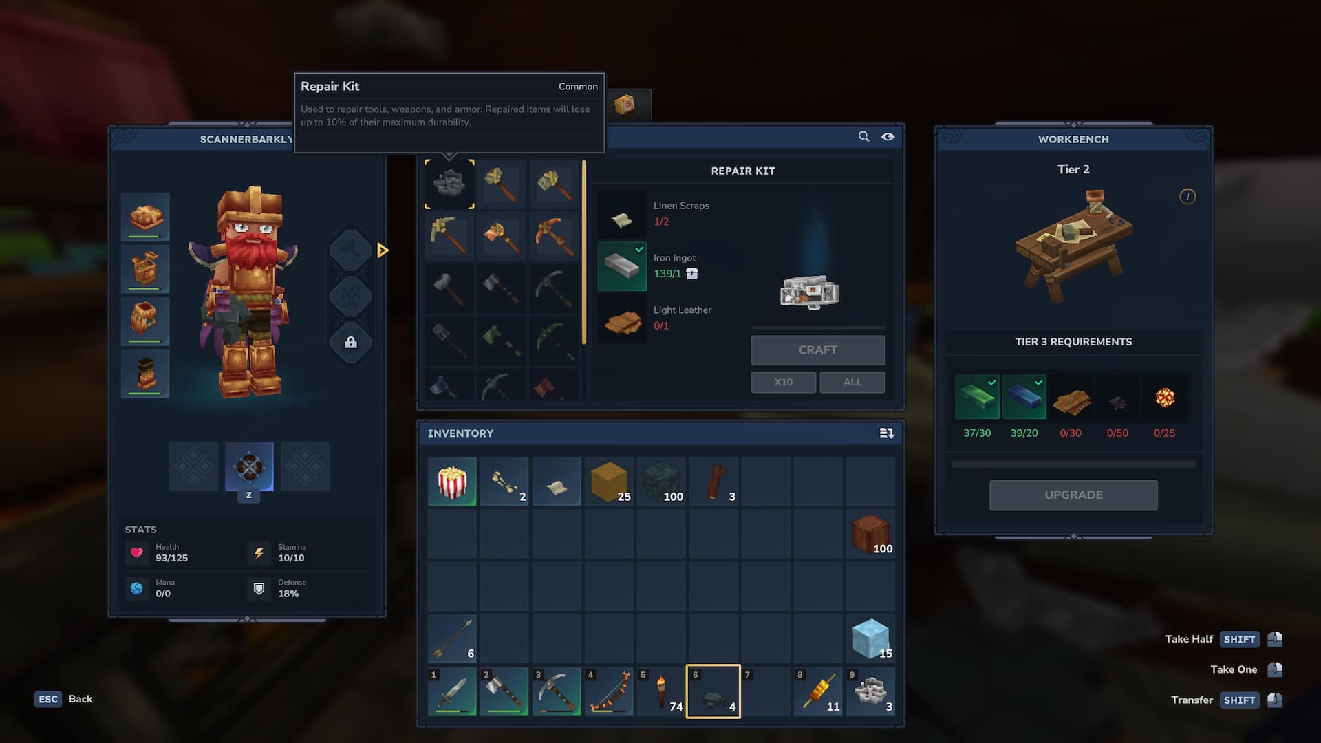В Hytale вы можете чинить свои инструменты, используя Наборы для ремонта. Эти наборы создаются на Верстаке – это одна из первых вещей, которые вы можете построить! После создания они помещаются в ваш инвентарь, позволяя вам чинить инструменты на ходу вместо того, чтобы носить с собой дубликаты во время исследования.