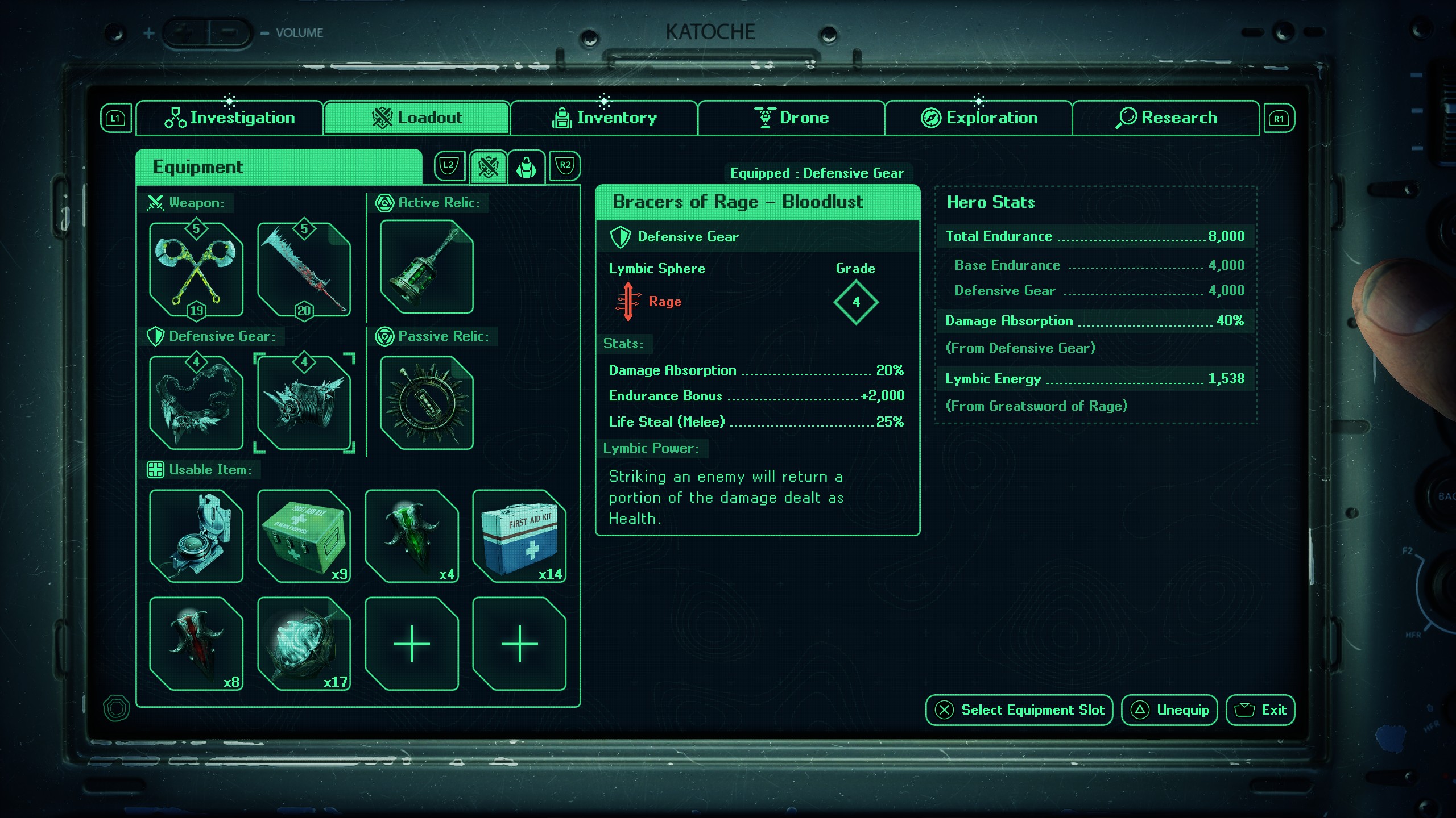 Перейдя в меню датапада, перейдите в раздел «Снаряжение». Там вы найдете места для вашего оружия, защитного снаряжения, предметов для использования, активной реликвии и пассивной реликвии. Чтобы экипировать любой из этих предметов, просто нажмите на один из пустых слотов и выберите желаемый предмет.