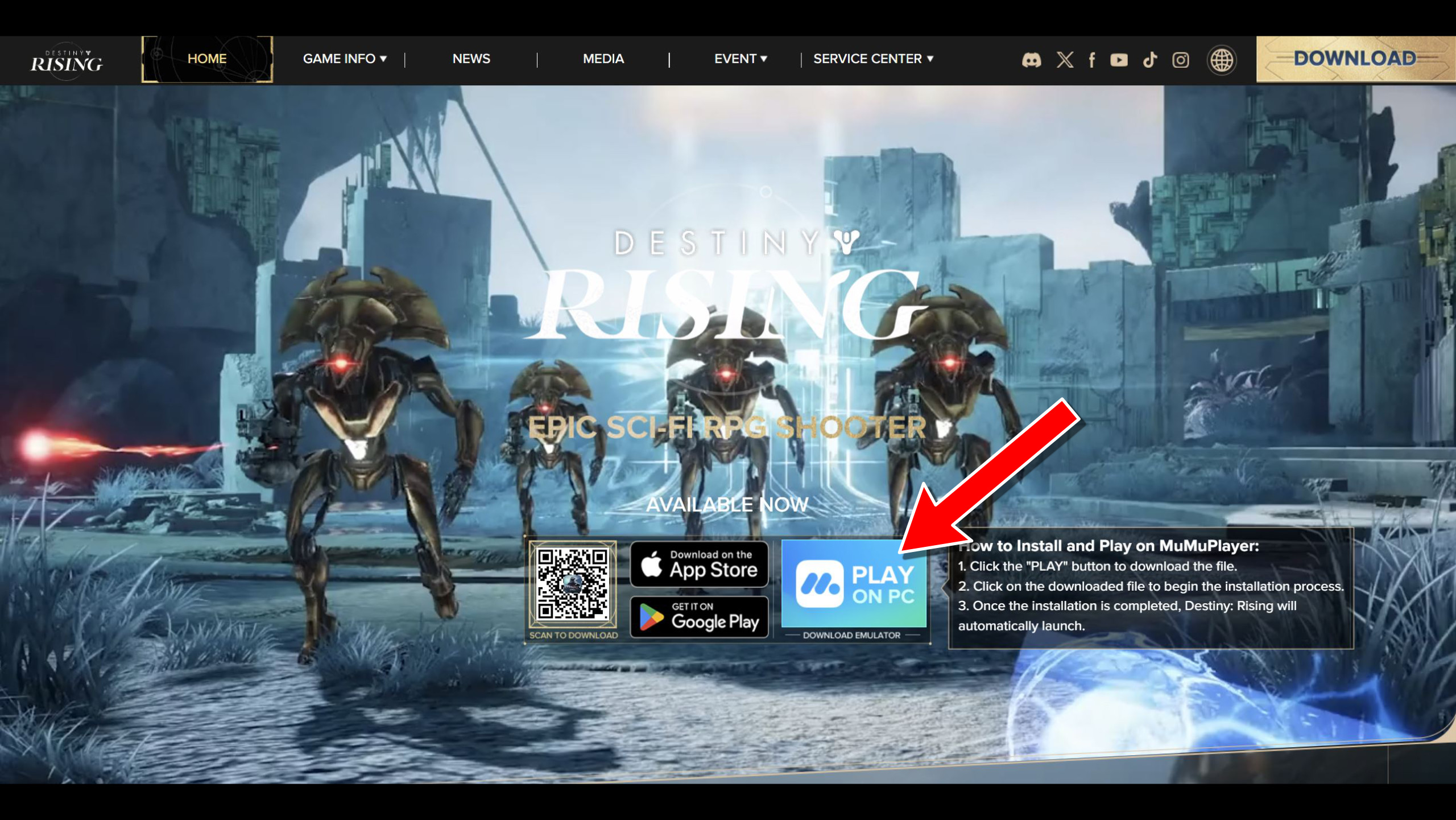 Процесс установки несложный. Нажав кнопку ‘Играть на ПК’ на веб-сайте Destiny: Rising, вы запустите загрузку эмуляторного программного обеспечения в указанную вами папку. После установки и запуска этой программы вы увидите копию домашнего экрана Android-устройства. Если Destiny: Rising предустановлен, он появится на домашнем экране; если нет, поищите его в Центре приложений.