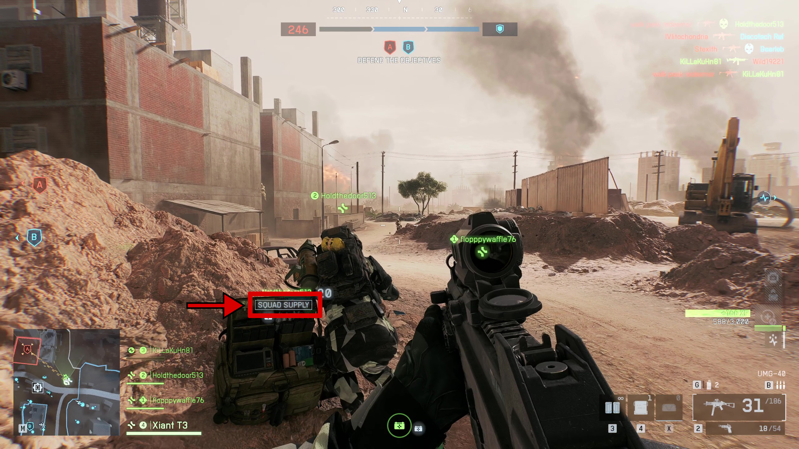 Вы можете понять, что эффективно лечите товарищей по команде, когда под их именем появляется надпись ‘Supply’ после того, как вы бросили им ящик с припасами. Если они в вашем отряде, там будет написано ‘Squad Supply’ вместо этого.