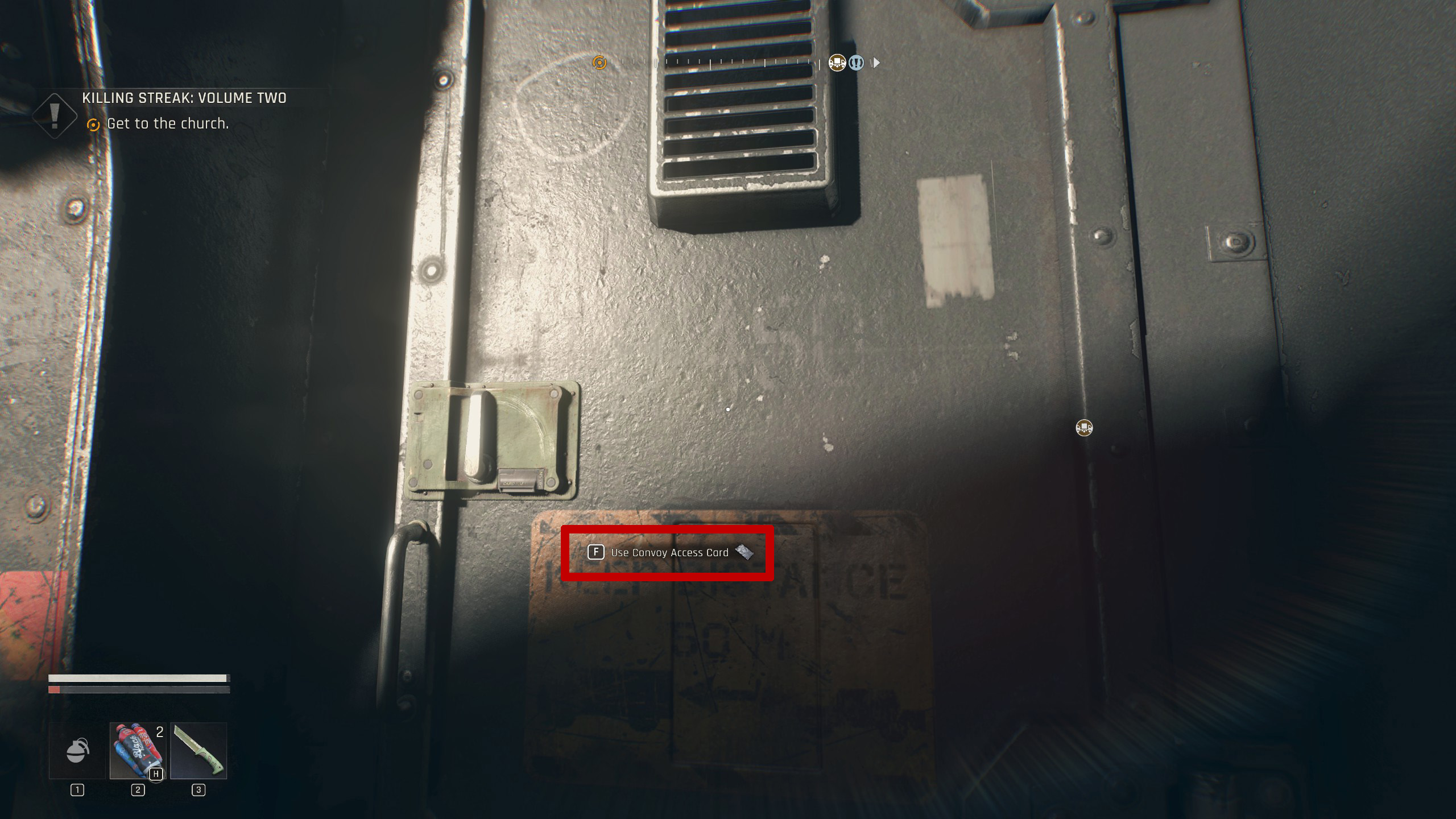 Военные грузовики надежно заперты. Для открытия задней двери вам понадобится карта доступа, а для проникновения в боковые отсеки – отмычки.