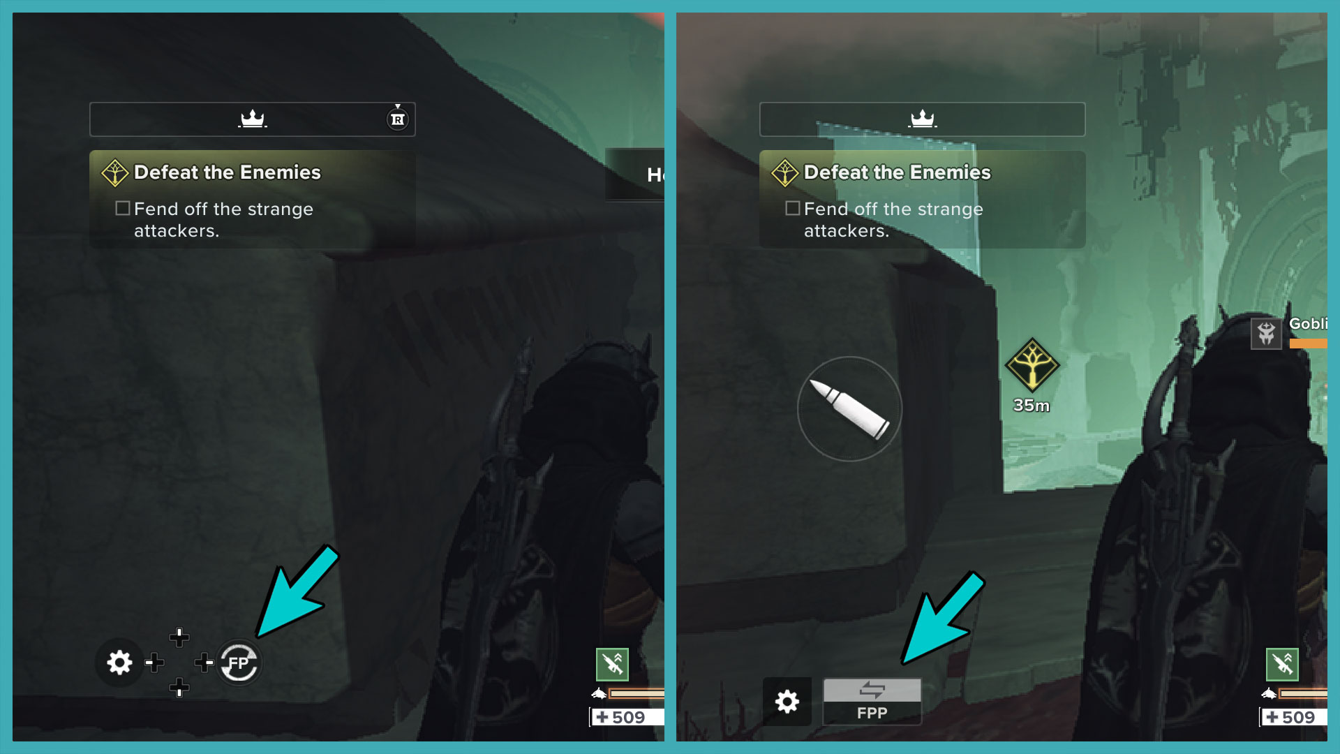 Во время игры вы можете переключаться между видом от первого и от третьего лица, найдя соответствующую кнопку в левом нижнем углу экрана. Положение этой кнопки может меняться в зависимости от способа управления игрой. Независимо от выбранного метода управления, элемент управления в левом нижнем углу будет обозначен как FP/FPP (вид от первого лица) или TP/TPP (вид от третьего лица). Нажмите эту кнопку, чтобы автоматически переключить перспективу. На контроллере это обычно делается нажатием вправо на крестовине.
