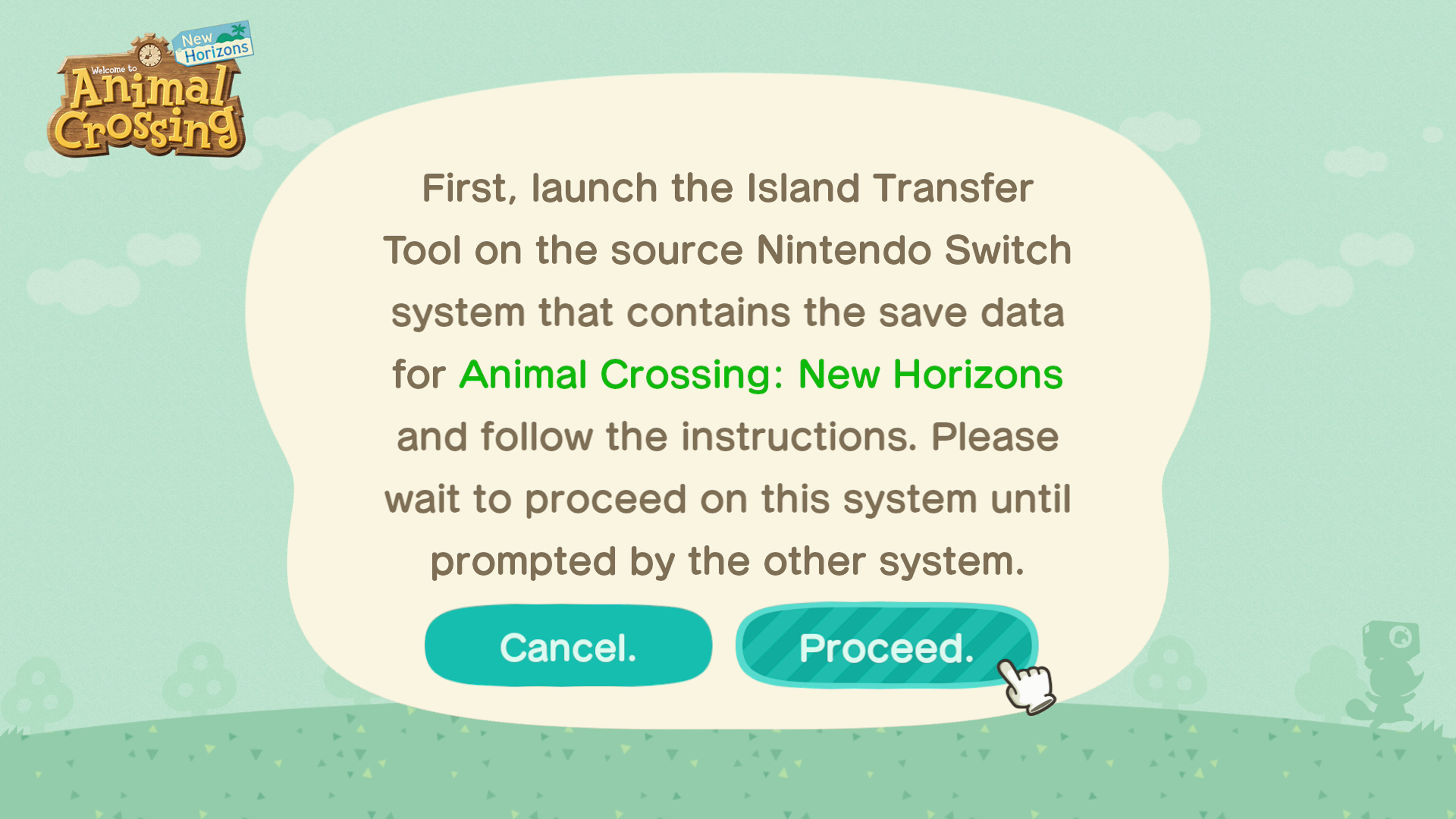 - Выберите «Перенос данных», когда на исходной консоли отображаются данные сохранения вашего острова.