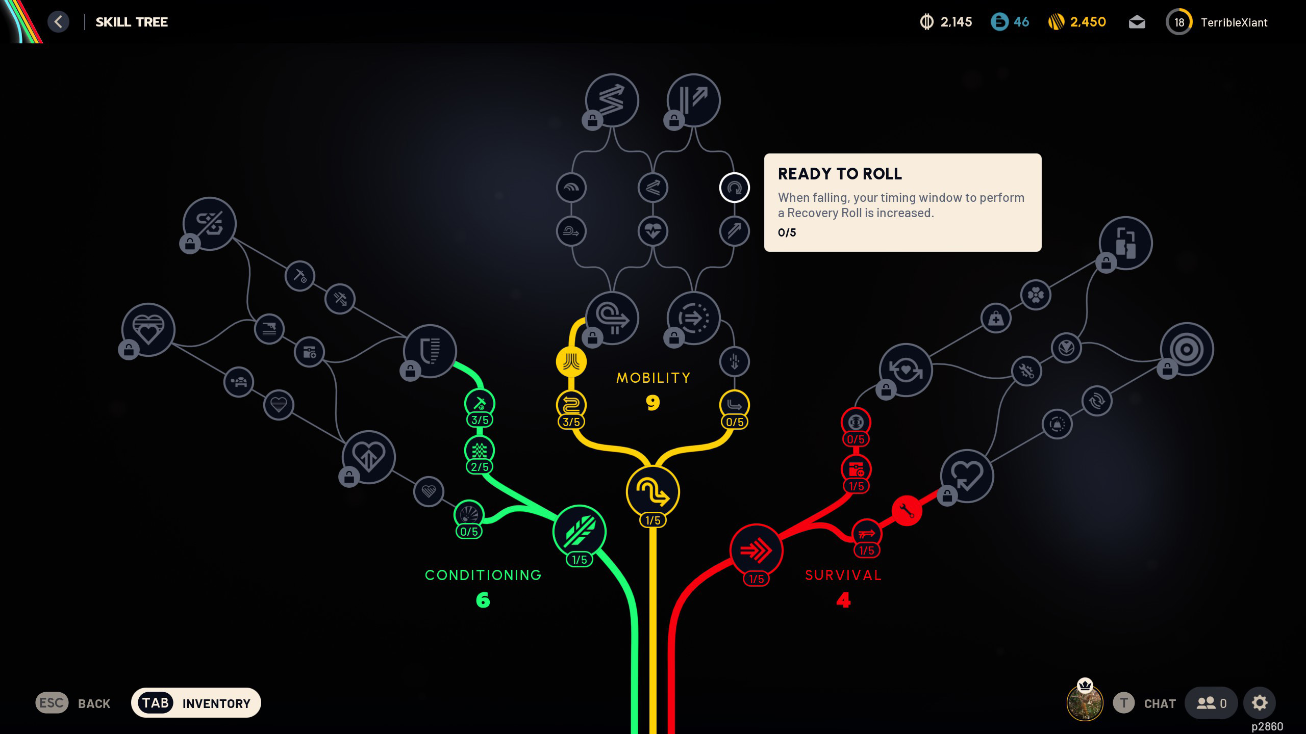 Навык Ready to Roll, найденный в дереве Мобильности, даёт вам больше времени на успешное перекатывание и избежание урона от падения. Вероятно, вам всё ещё не стоит носить слишком много веса, и даже с полностью прокачанным навыком тайминг может быть сложным. Однако, если вам нравится выполнять акробатические движения и паркур, это полезный навык, в который стоит вложить очки.