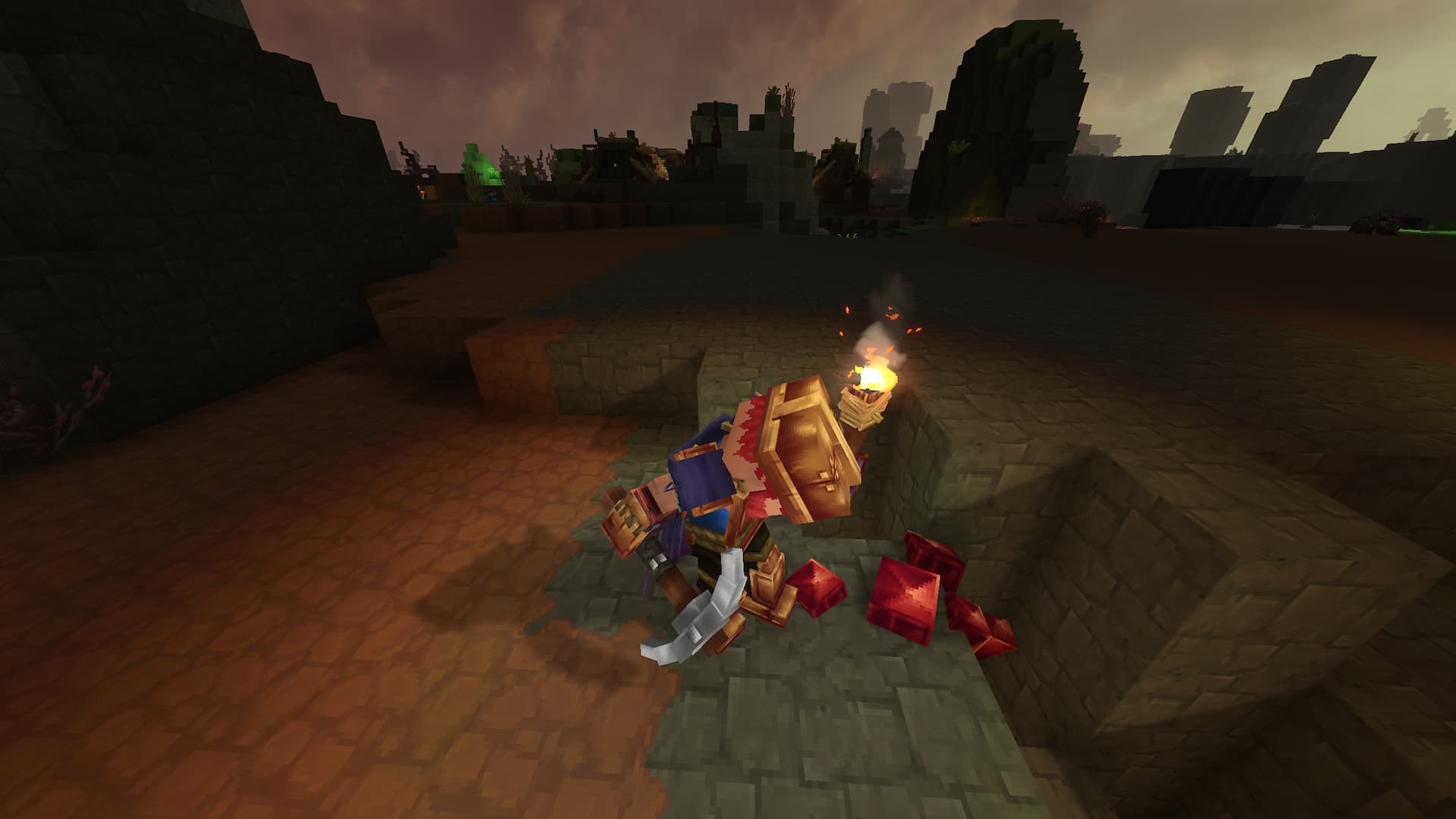 Разрушенные Земли – самая сложная область в Hytale на данный момент, так что будьте готовы! Возьмите с собой лучшее оружие и броню, много факелов, если вы исследуете пещеры, и много еды, чтобы восстановить здоровье – вам, вероятно, причинят урон.