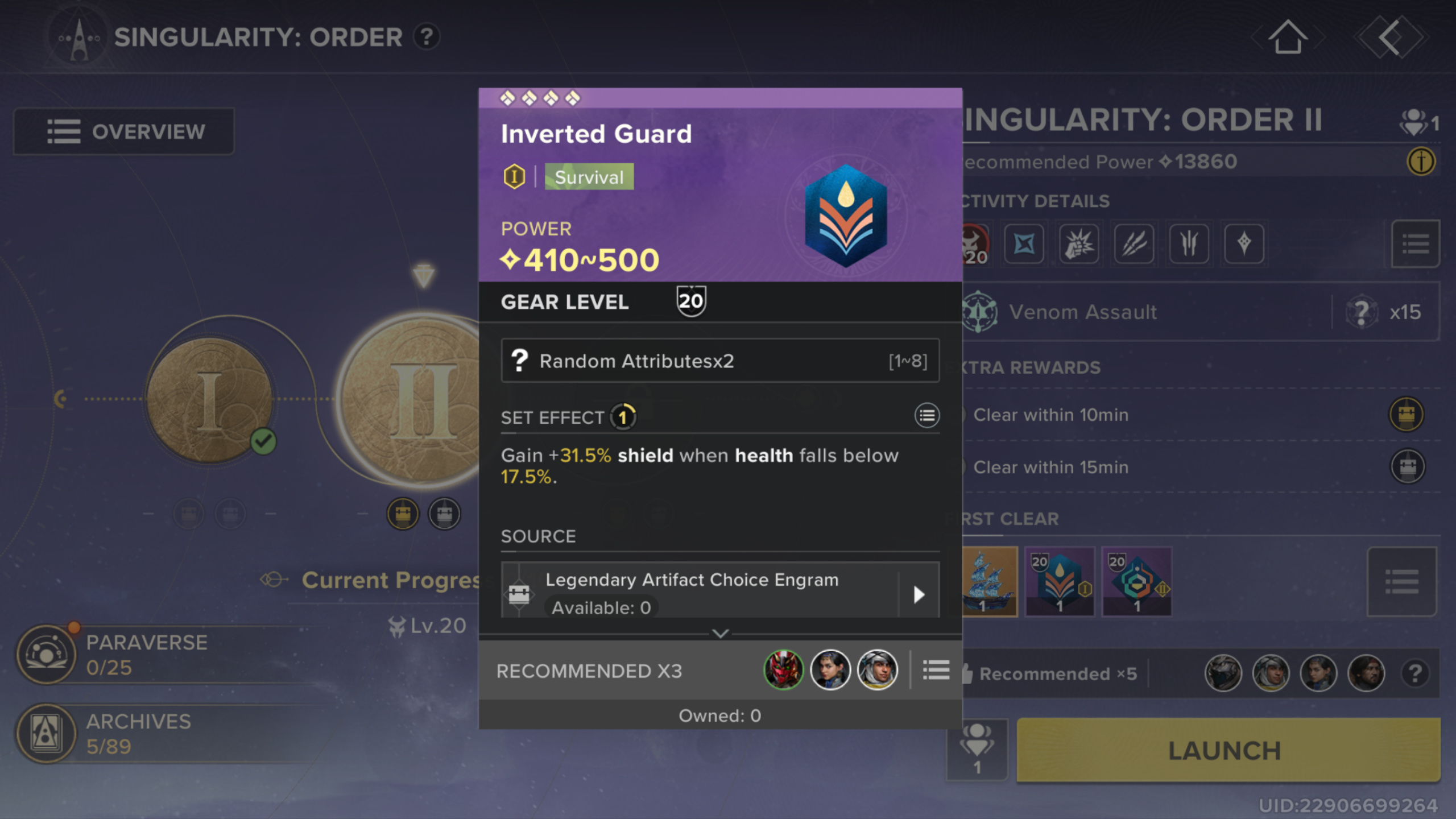 В мире IX за выполнение заданий выдаются дополнительные Артефакты. К ним относится Порядок Сингулярности и его уровни возрастающей сложности. По мере прохождения этих уровней вы будете накапливать более мощные Артефакты, которые можно будет разместить внутри них. Обратите внимание, что несколько Артефактов с идентичными атрибутами могут объединяться, усиливая их эффекты.