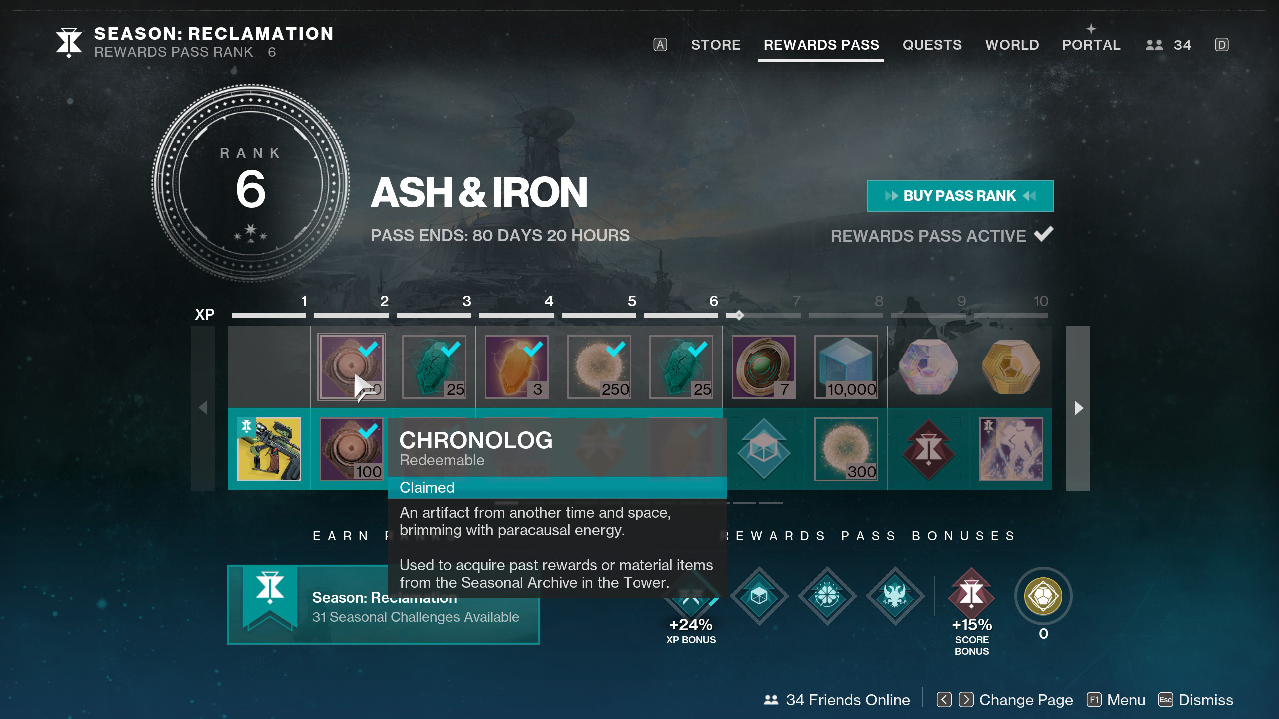 По моему опыту, как преданного игрока в Destiny 2, единственный способ, которым я пока смог получить Хронологии, – это награды за боевой пропуск во время событий, известных как «Прах и Железо» и Сезон: «Возрождение».