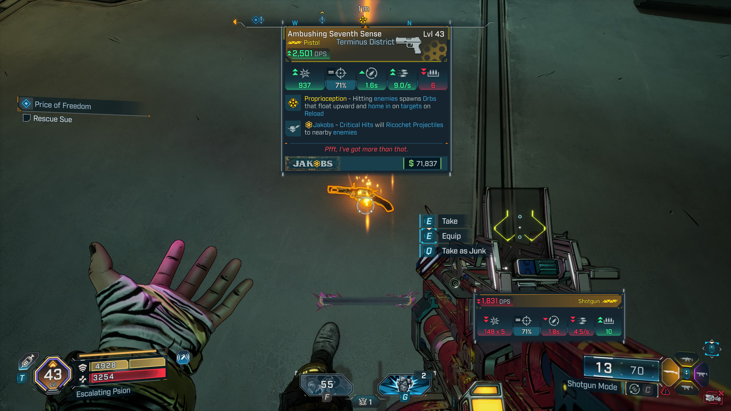 Предмет Седьмого Чувства можно получить из любого из трех боссов, и мне повезло получить хороший экземпляр довольно быстро – уже со второй попытки! Однако, это был нелегкий процесс. Основная проблема в том, что Эксперимент 42 очень непредсказуем и его сложно быстро убить. Эксперимент 1709 медленный и крупный, а Тед просто несется прямо на вас.