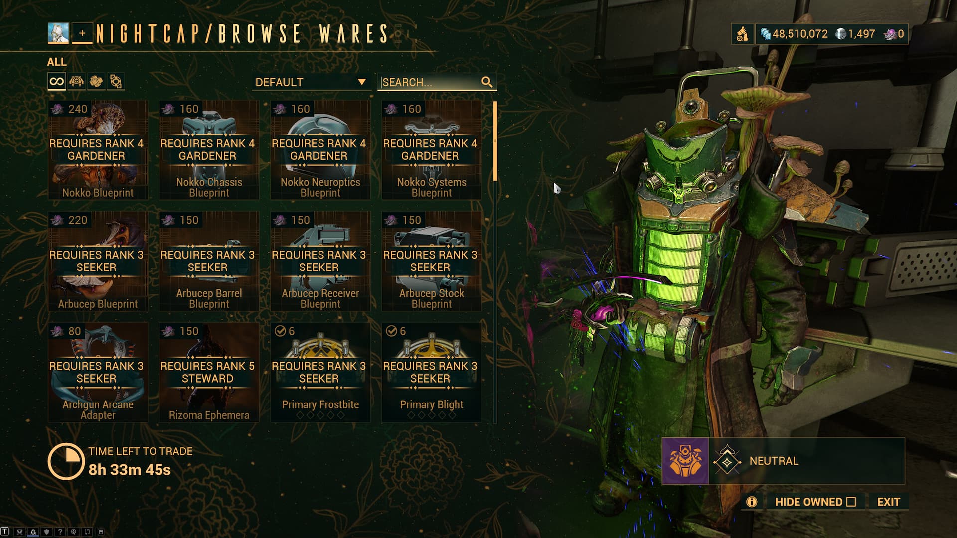 По мере повышения вашего статуса в Синдикате Nightcap, вы сможете приобретать детали, начиная с Ранга 4. Вы будете использовать Fergolyte для покупки этих деталей, и вы получаете Fergolyte за выполнение наград Nightcap.