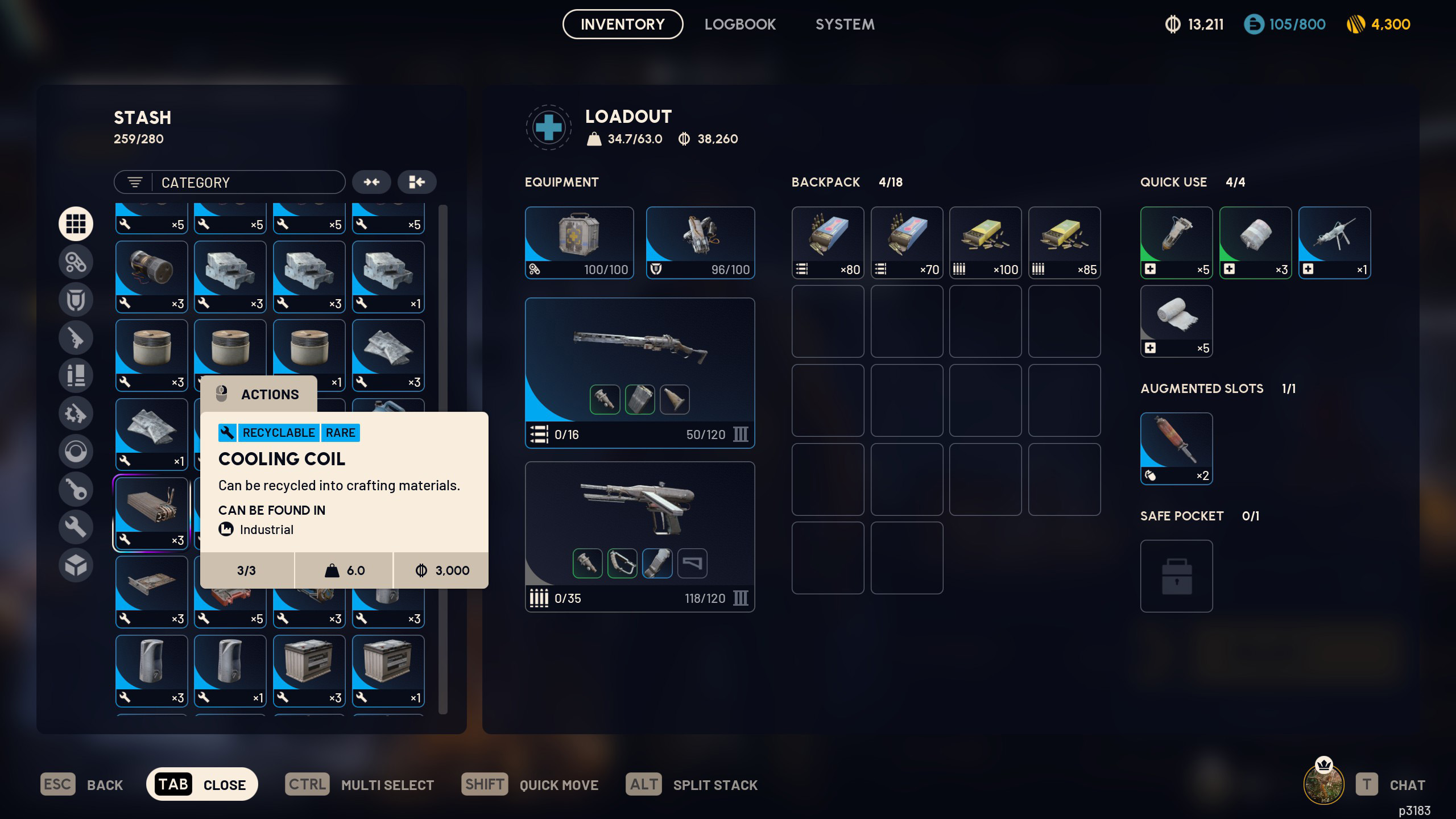 Лучше всего тщательно исследовать каждую локацию, или настолько, насколько это возможно. Количество предметов, которые вы можете собрать, зависит от количества места в вашем инвентаре улучшений. Поскольку вы можете нести несколько охлаждающих катушек, берите их, когда находите. Если вам нужно вернуть их в Сперанцу, положите некоторые в свой безопасный карман.