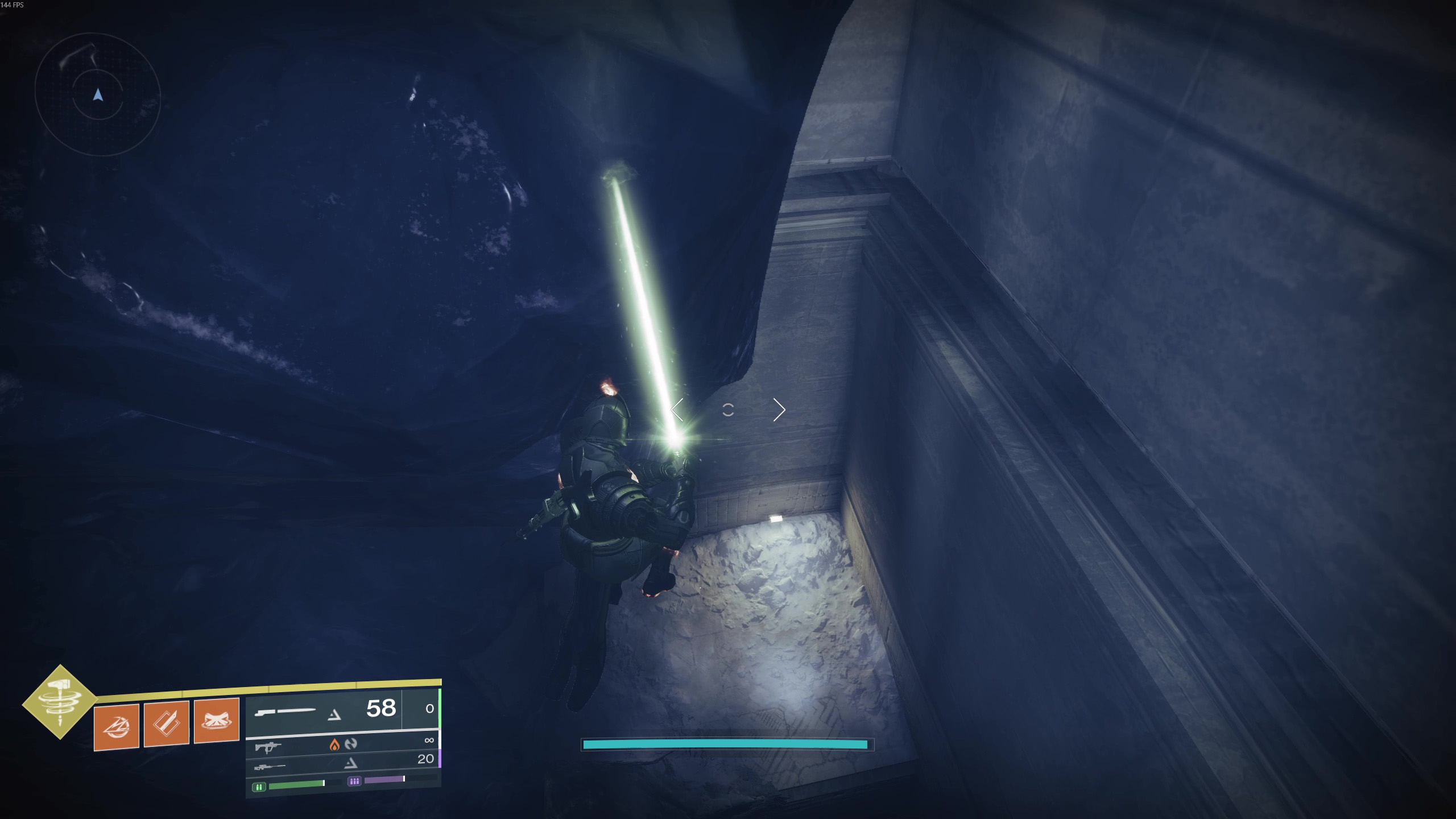 Продолжайте выполнять задание, пока не пройдете первую группу подвижных блоков и не достигнете области, где вам нужно подняться на следующий уровень. Вместо того, чтобы взбираться наверх, используя большую, колонну, испорченную Taken, посмотрите направо, в тени.