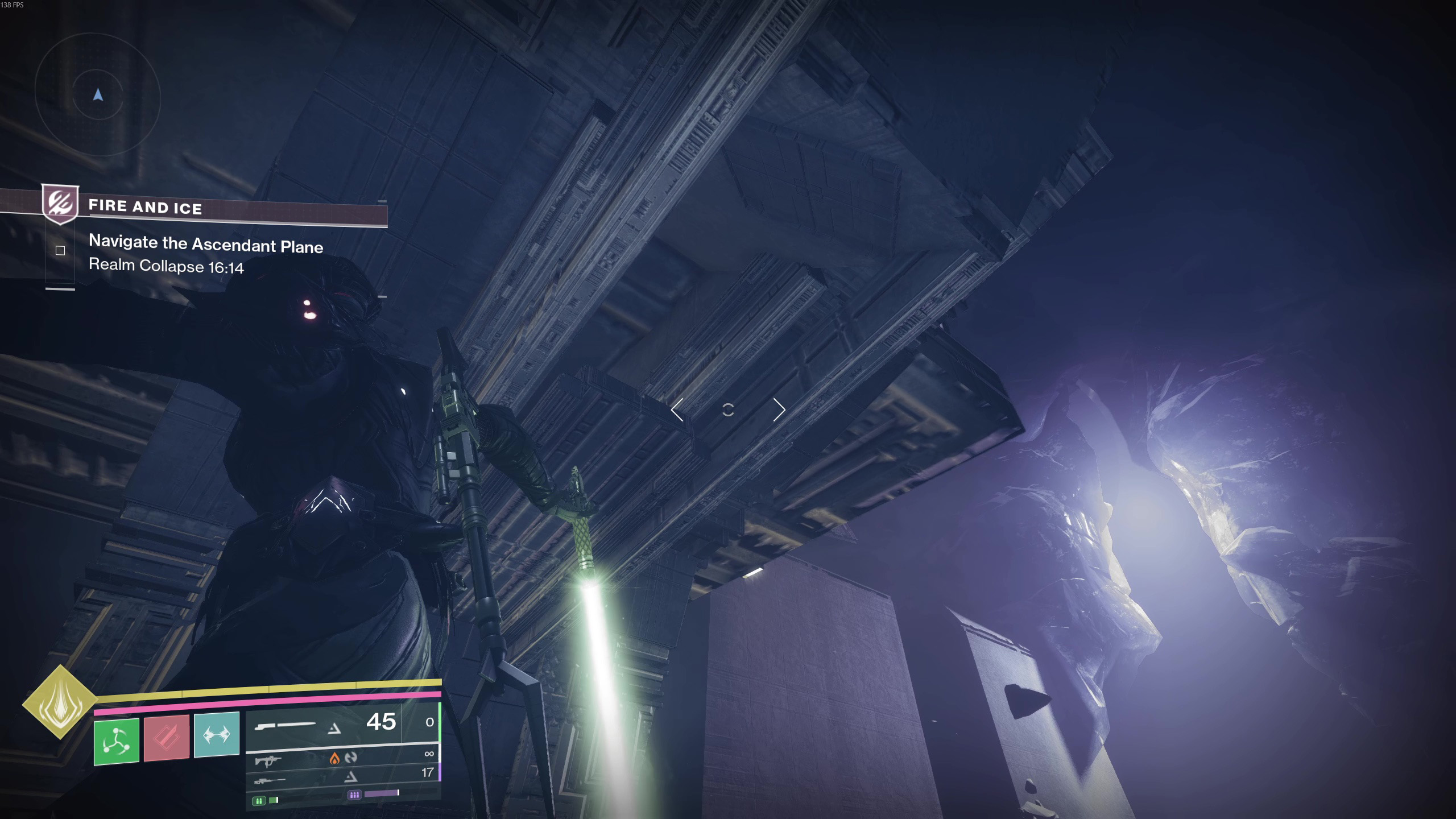 Оттуда, где вы находитесь, посмотрите через проем, и вы увидите небольшую полку, на которую можно прыгнуть. Оказавшись там, прыгайте вдоль стены слева на небольшую светящуюся платформу, а затем снова прыгайте на платформу на другой стороне.