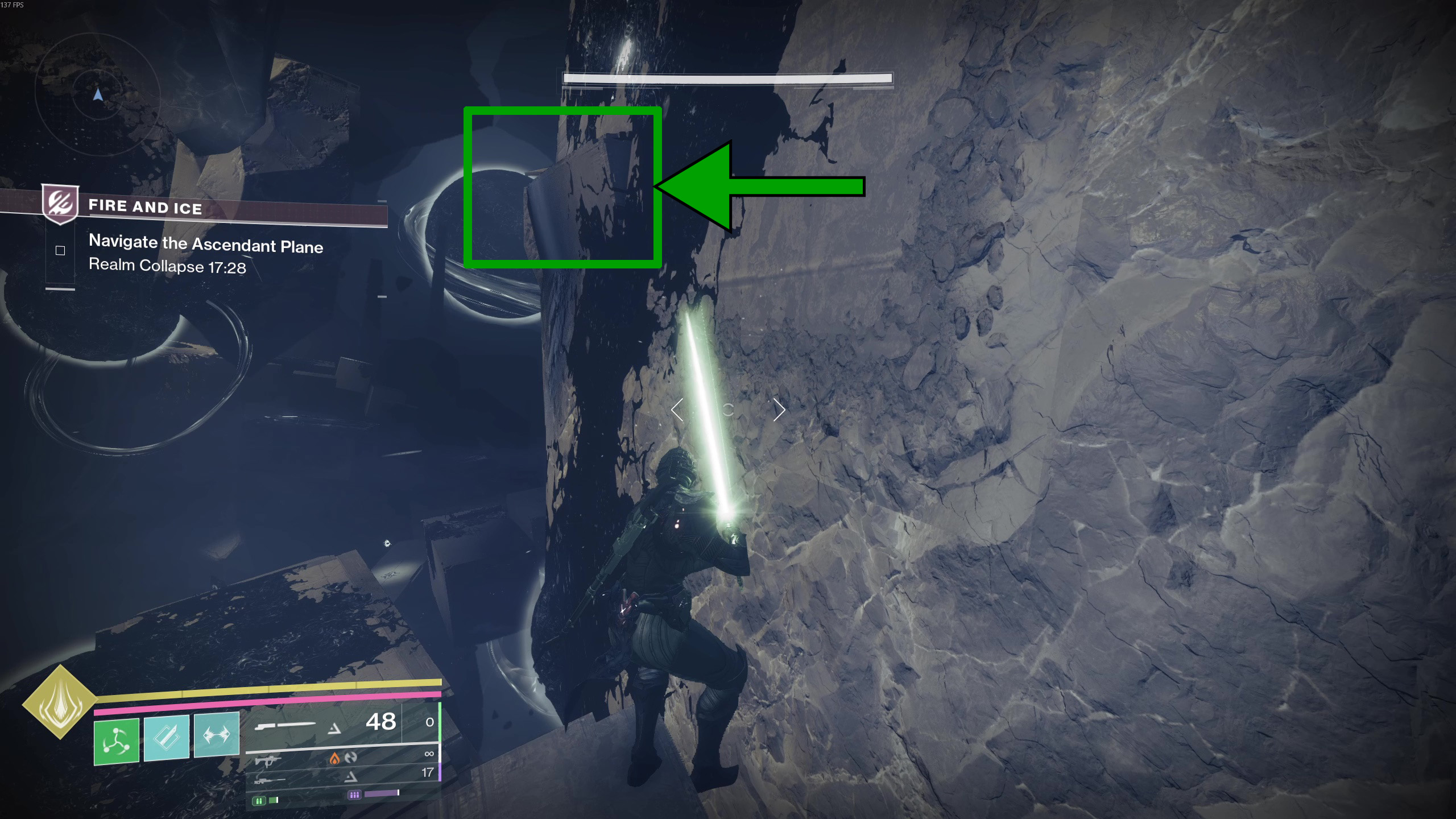 Как только вы подниметесь, вы заметите небольшой выступ, торчащий из стены, покрытый слизью Taken. Прыгните на этот выступ, а затем снова прыгните на большую платформу с другой стороны.
