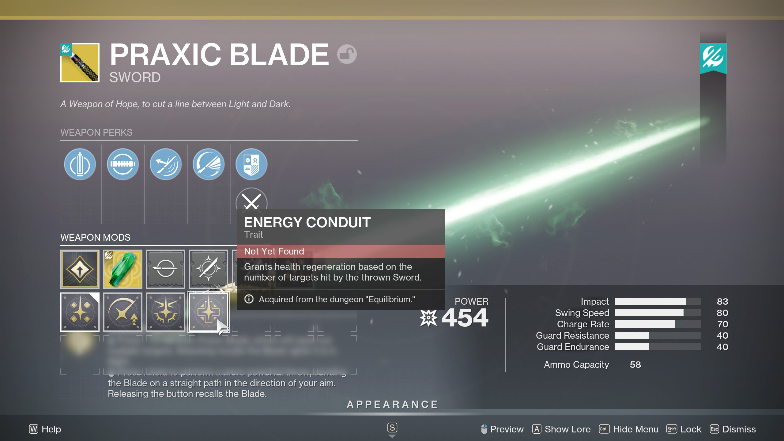 Последний Экзотический Катализатор для Лезвия Праксис, под названием Energy Conduit, спрятан внутри Подземелья Равновесия. Вероятно, для его открытия потребуется выполнить определенные задания внутри подземелья. Мы поделимся точными шагами, как только узнаем, что это за задания.