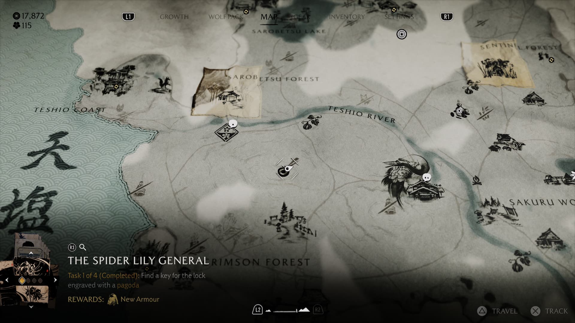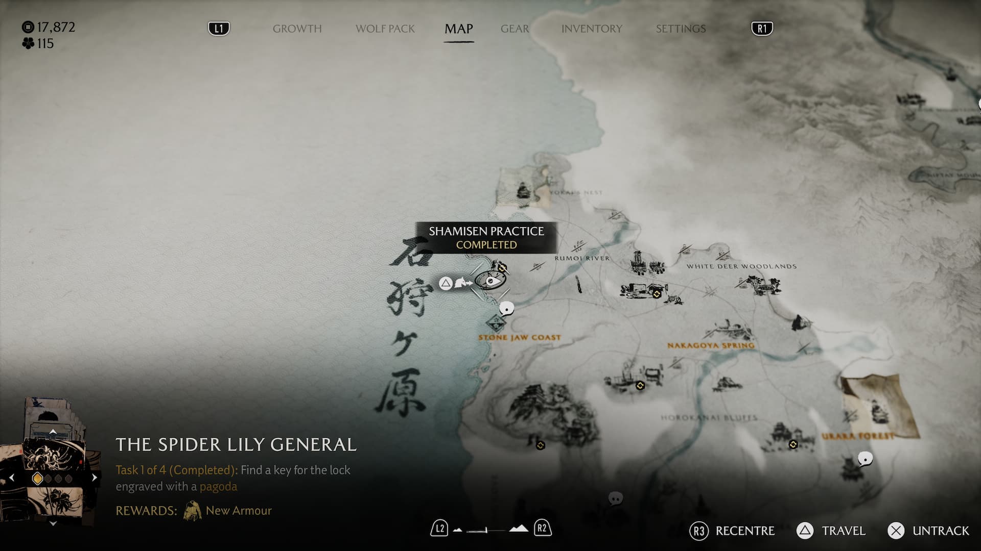 Чтобы найти ближайший коллекционный предмет, пройдите тренировку по игре на сямисене в хребте Тэсио. Он находится к юго-востоку от Дома чёрной краски, в горах.