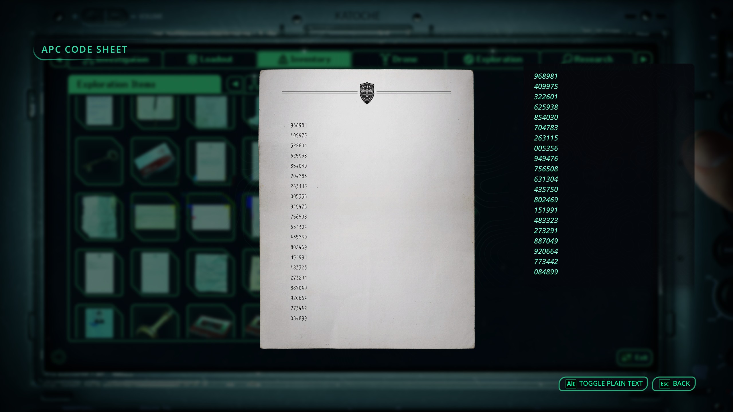 После завершения кинематографической сцены направляйтесь к бронетранспортёру. Направьте камеру под пассажирское сиденье, где появится значок предмета. Заберите предмет, и в качестве награды вы получите лист с кодом. Нужный код находится на этом недавно полученном листе на четыре строки ниже от верха.