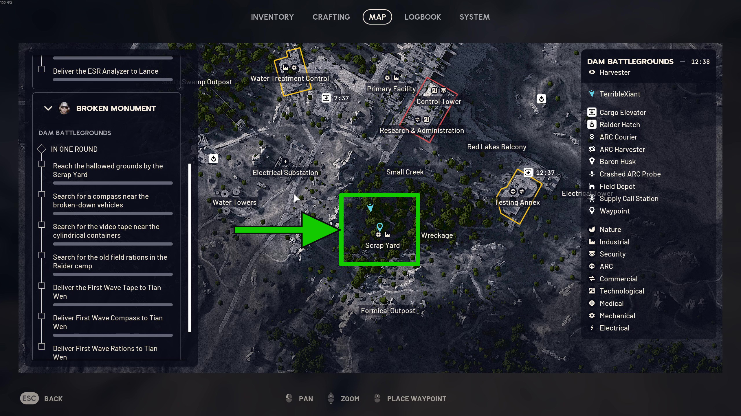 Чтобы завершить квест «Разрушенный Монумент», вам нужно отправиться на Свалку на Поле Битв Дам и найти три спрятанных тайника. Вам нужно найти все три и выбраться с их содержимым за один раунд — вы не можете выполнять его частями в течение нескольких раундов.