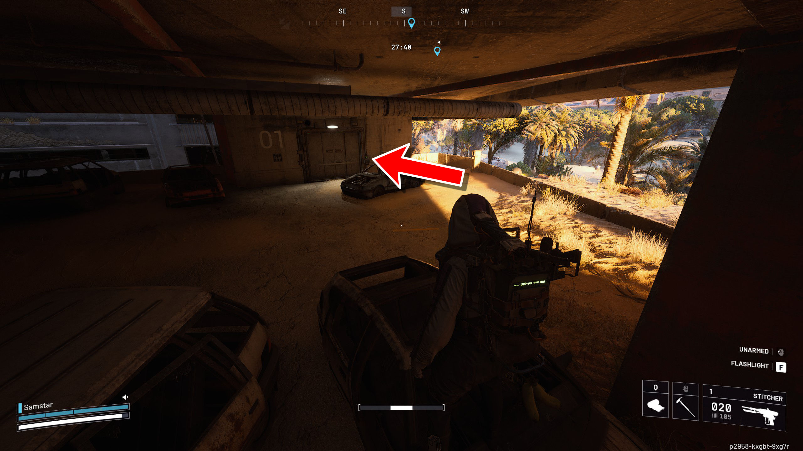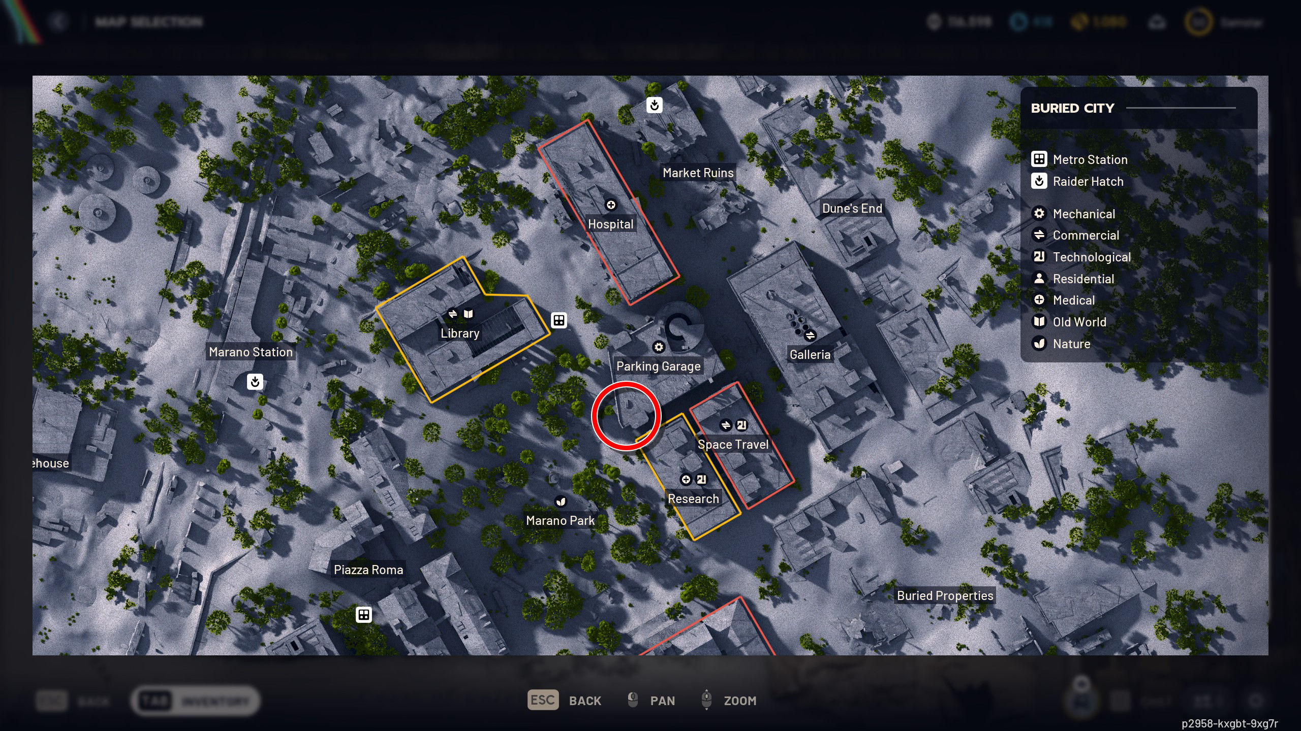 Лагерь Рейдеров под Парковкой в Заброшенном Городе расположен между областями Больницы и Космических Путешествий. Чтобы туда добраться, отправляйтесь в юго-западный угол Парковки и силой откройте дверь лифта. Затем спуститесь по шахте лифта, чтобы добраться до лагеря.