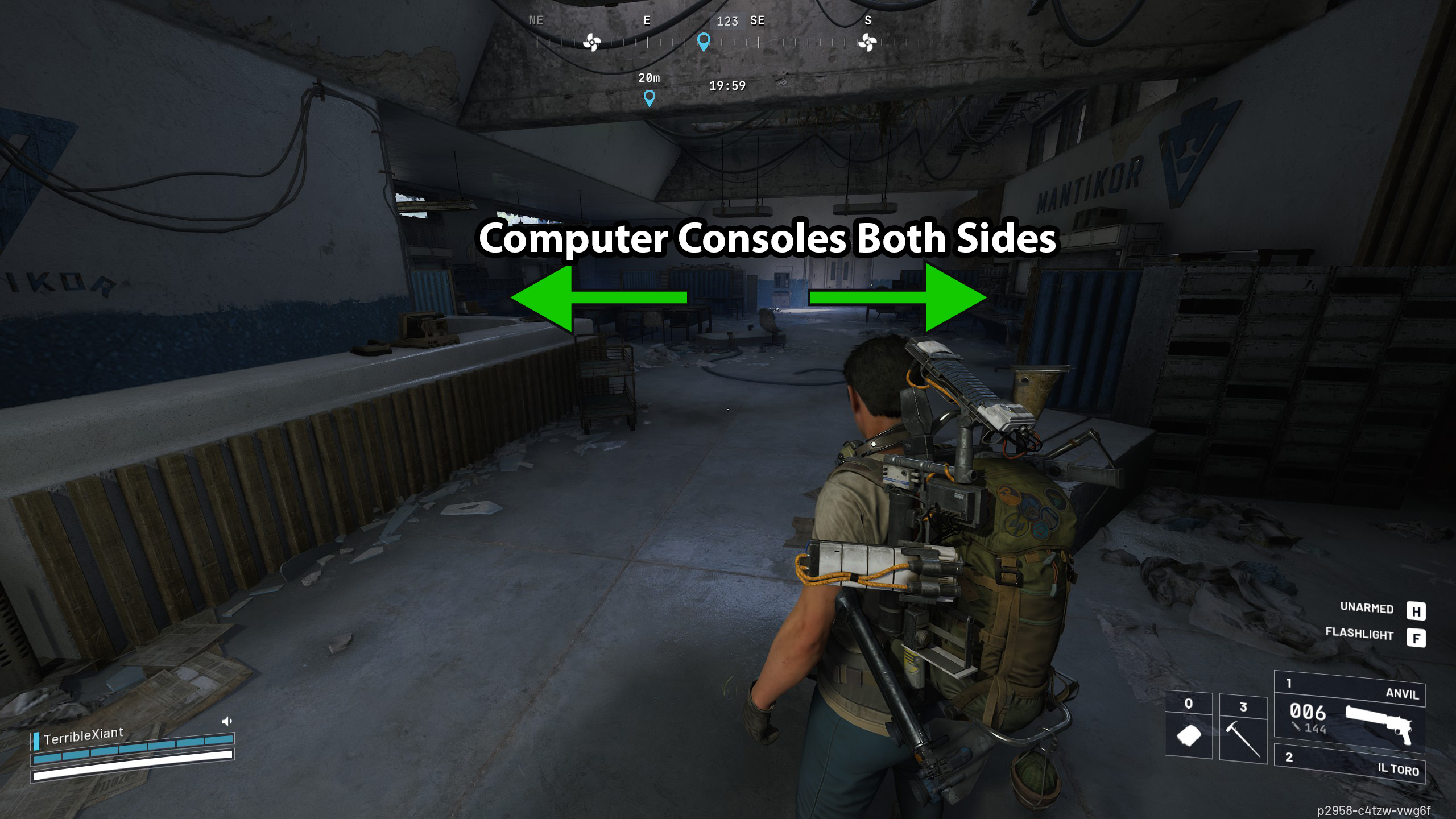Используйте четыре ключевые карты в контрольных панелях, помеченных белым значком ключа (эти значки вы найдете на компьютерных консолях в Контрольной комнате). После использования четвертой ключевой карты откроются главные контрольно-пропускные ворота, что позволит вам исследовать и собирать предметы.