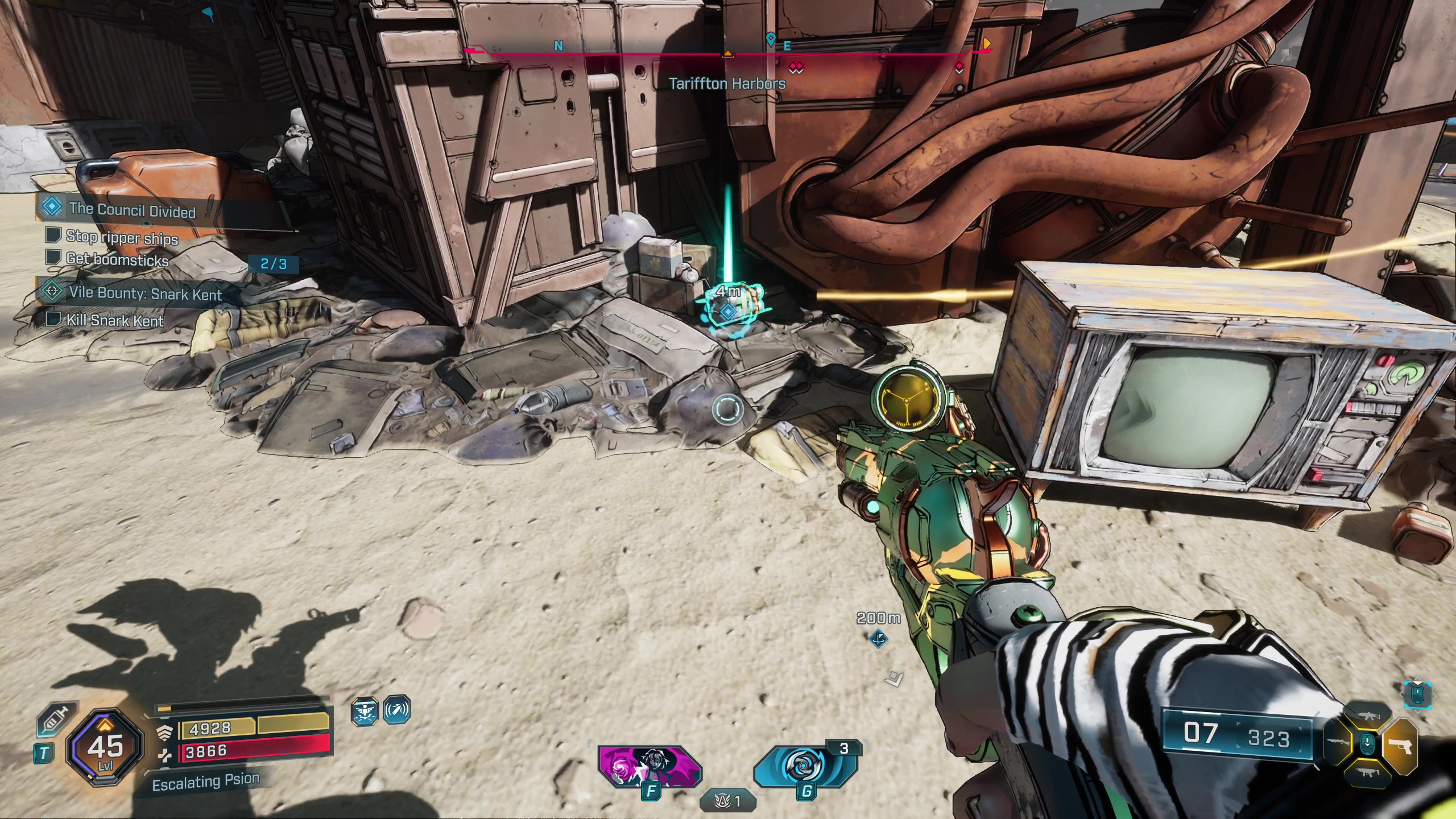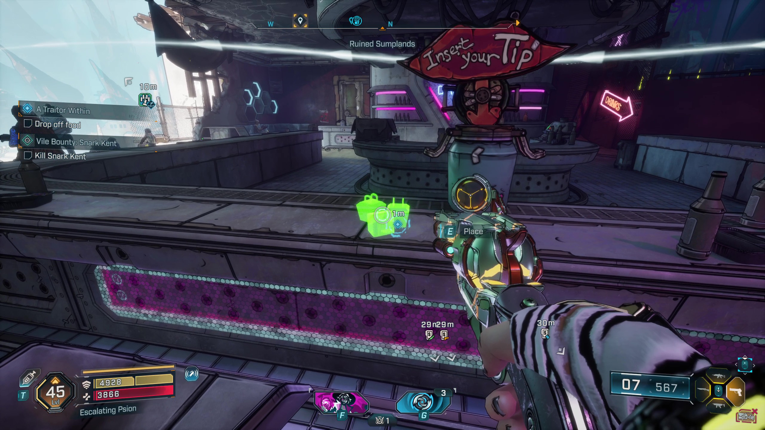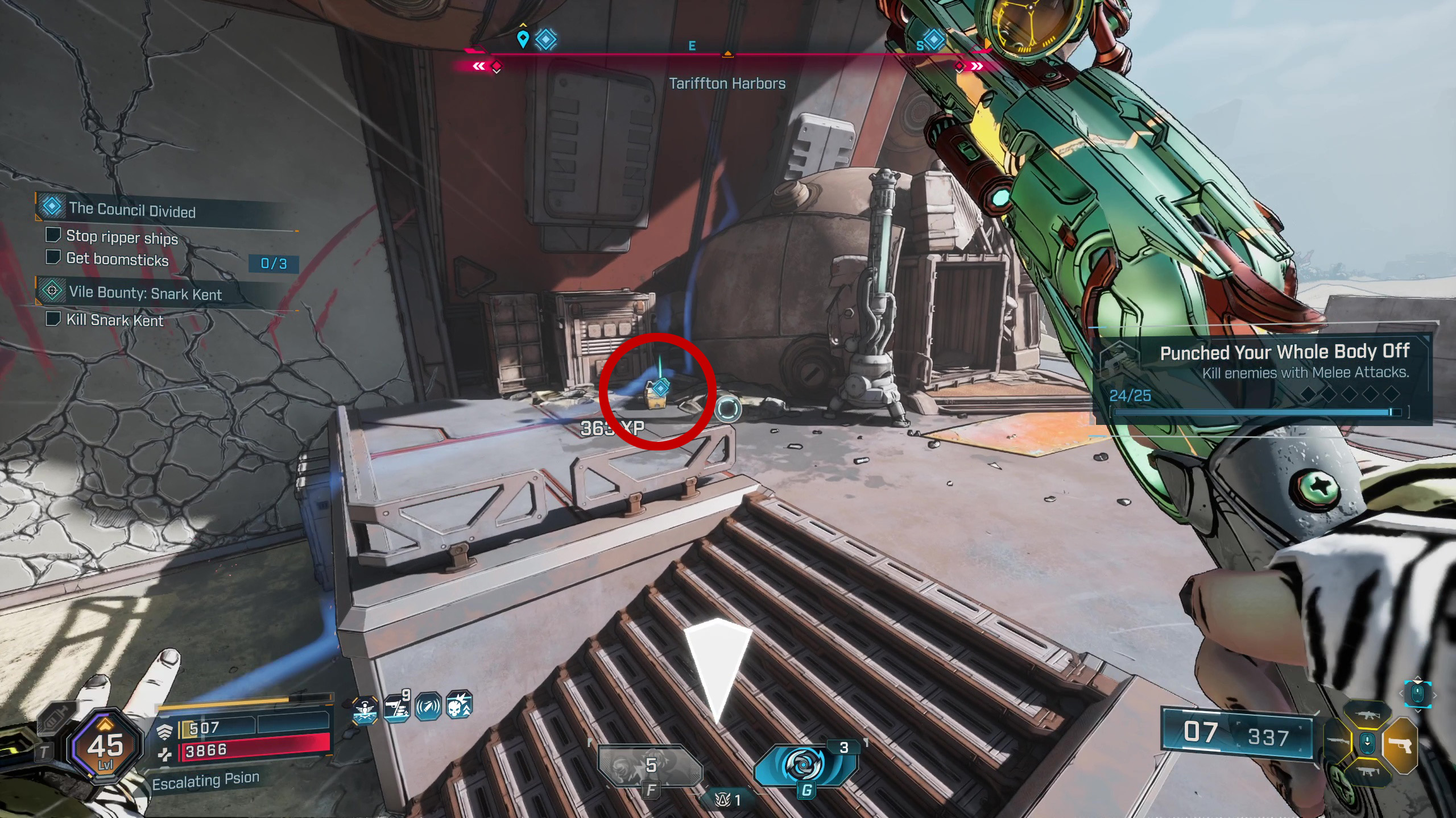 Подобно Borderlands, здесь ваша ‘еда’ — это фактически патроны — они поддерживают работу вашего оружия. Вернитесь в Каркадию и доставьте ящики, чтобы завершить эту начальную миссию.
