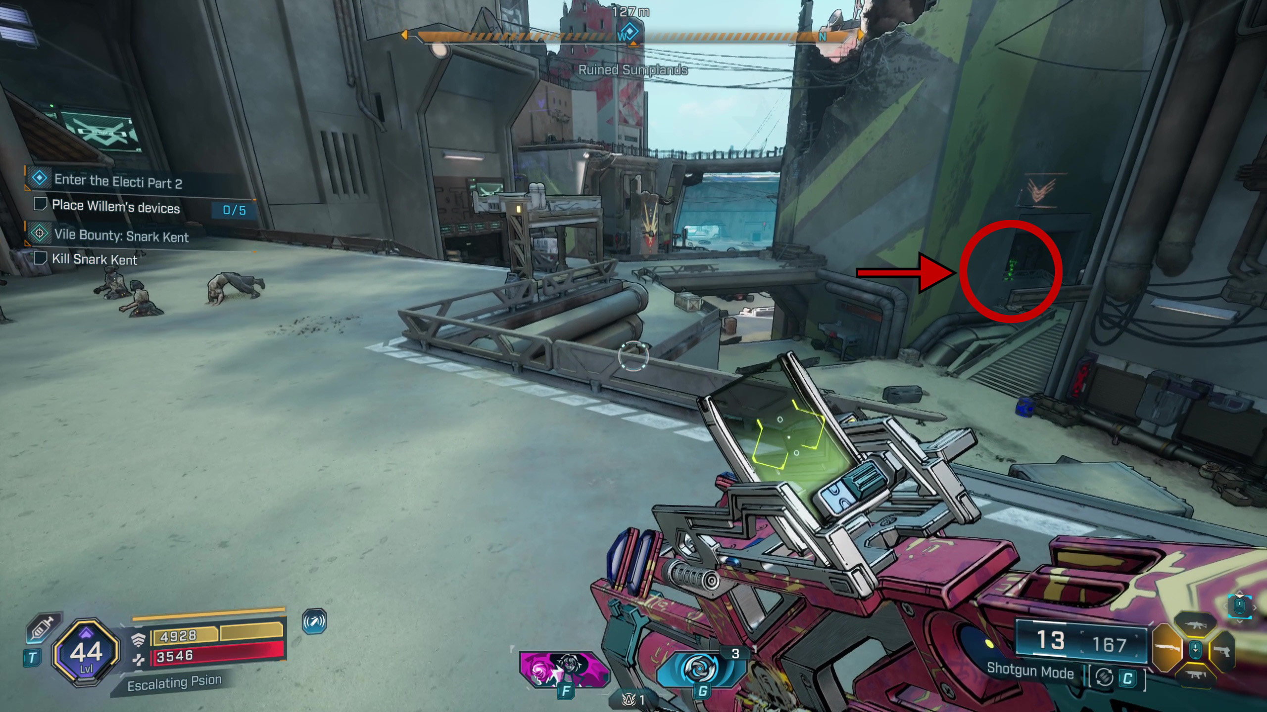Чтобы найти ЭМИ, отправляйтесь на юг к конвою Ордена возле силоса Ордена Ржавого Броска. Зачистите врагов, а затем взломайте терминал — он покажет вам местонахождение фабрики синтетиков Виллема, которая находится далеко на востоке.