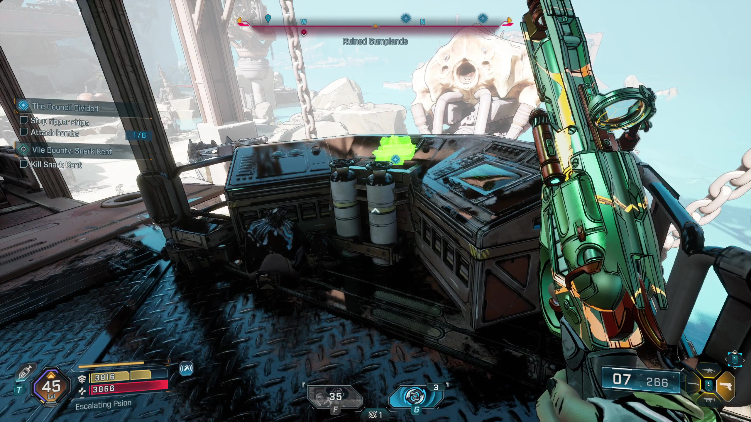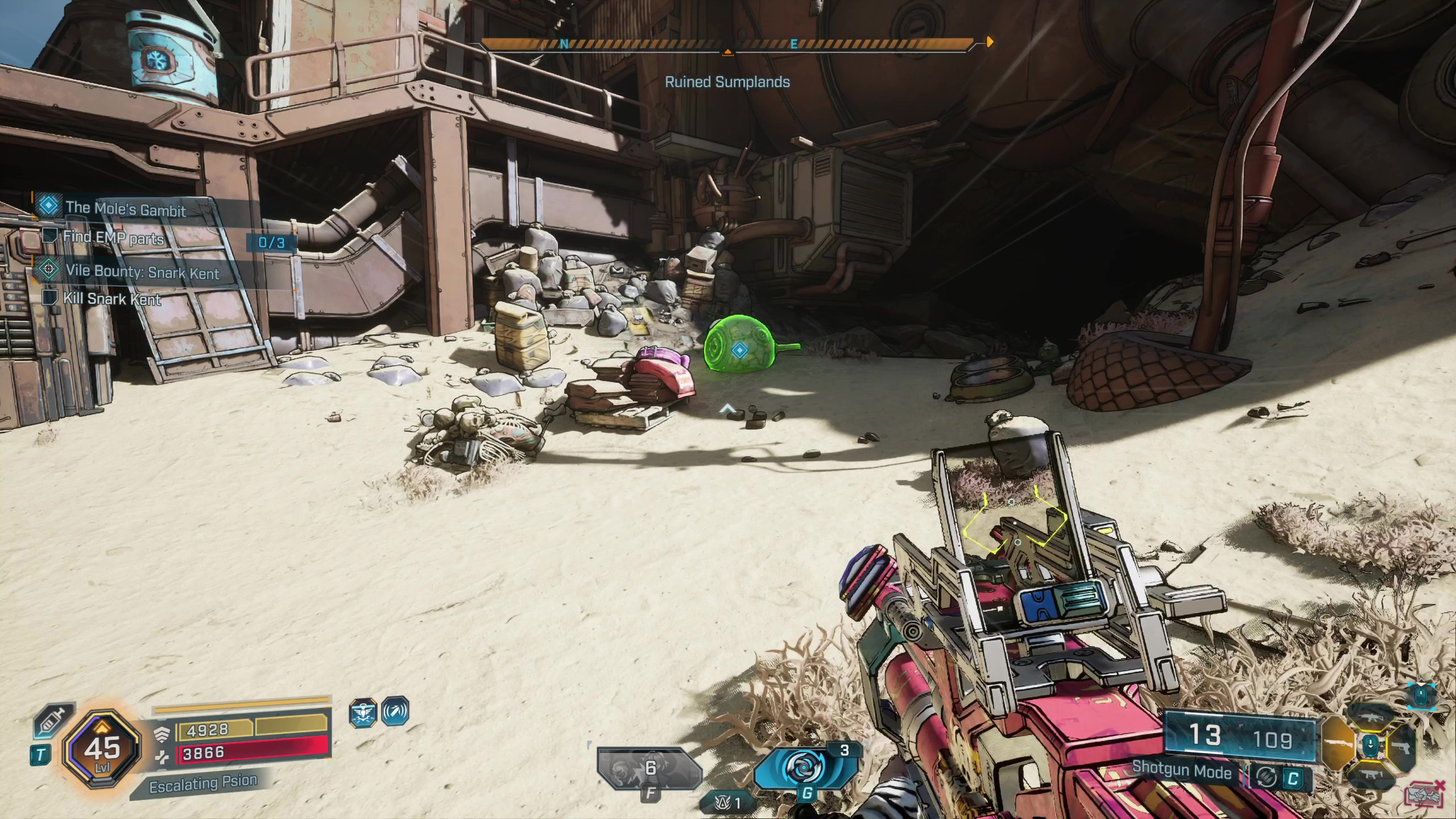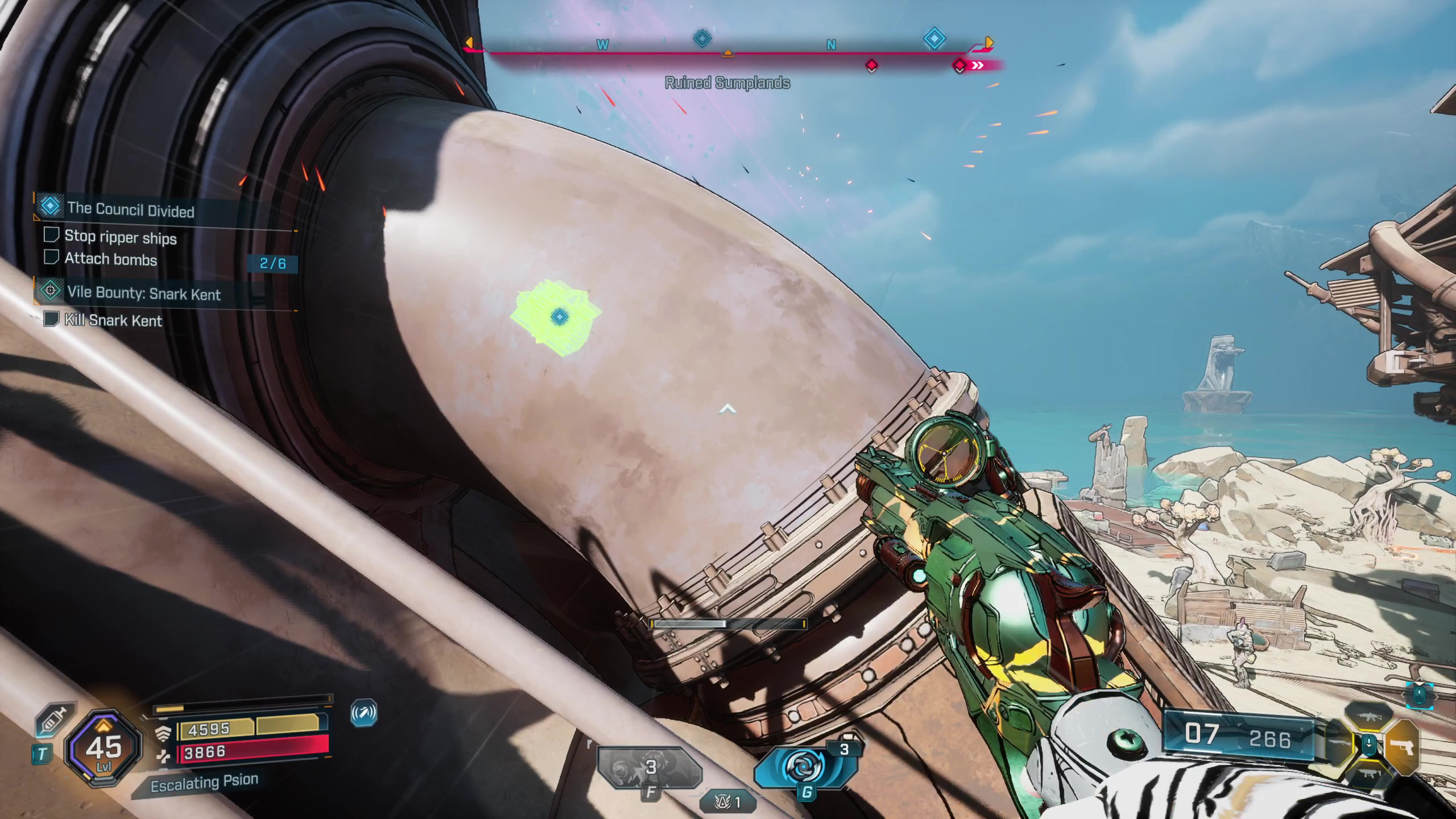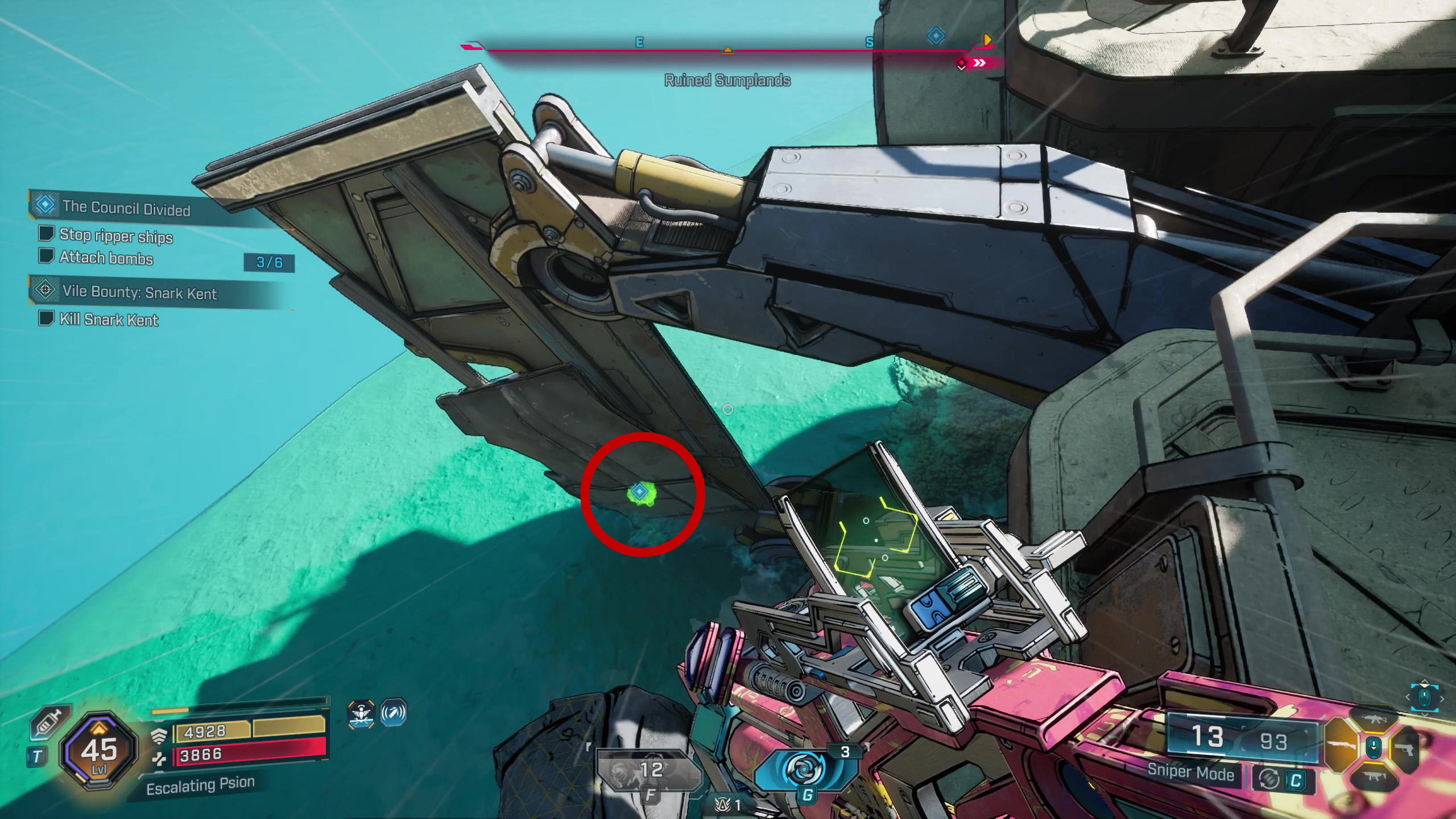 Хорошо, значит, оружие, которое мне нужно, теперь находится в дальнем северо-востоке Обгоревшей земли — туда я и направляюсь. Просто предупреждаю, мне нужно будет заглянуть к точке быстрого перемещения у моста возле лагеря Разрушителей, чтобы продвинуться в квесте, прежде чем я пойду.