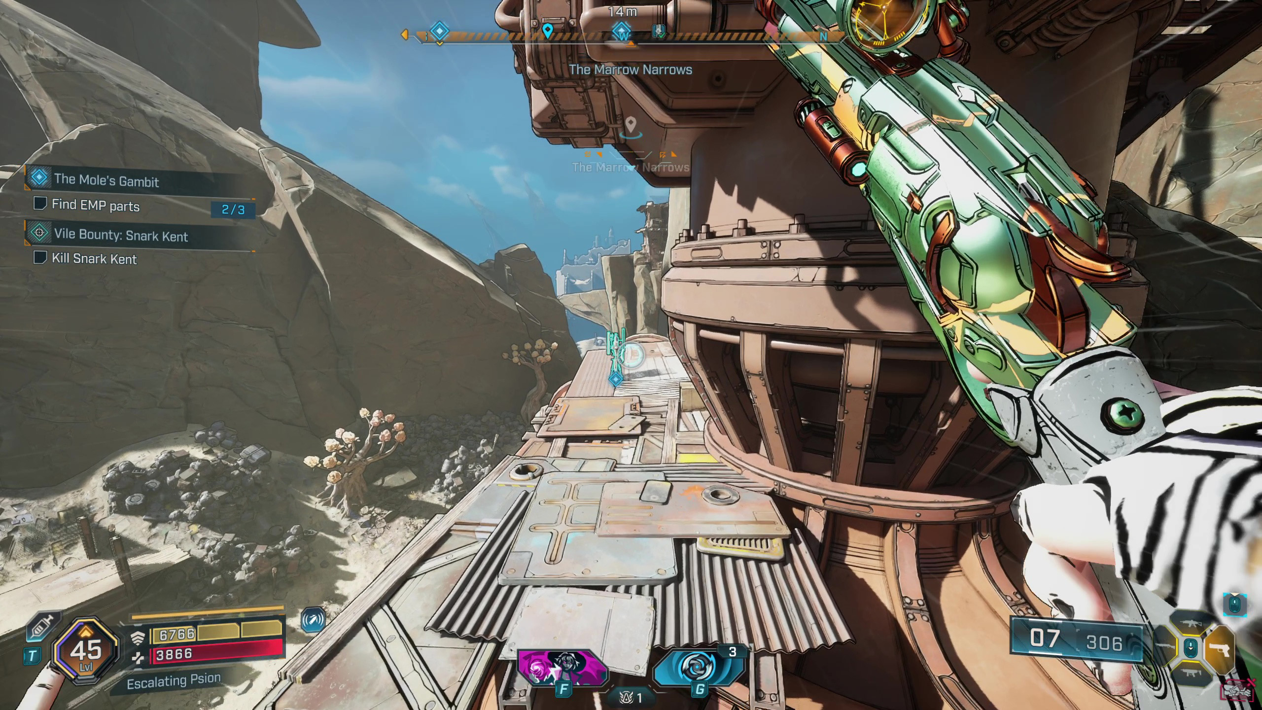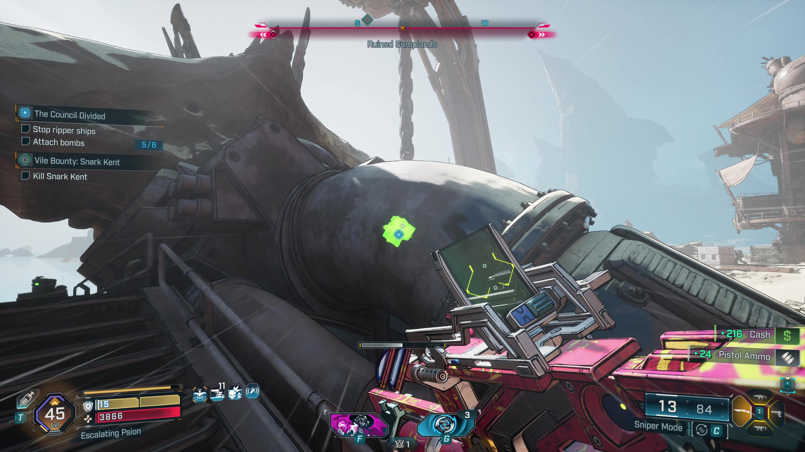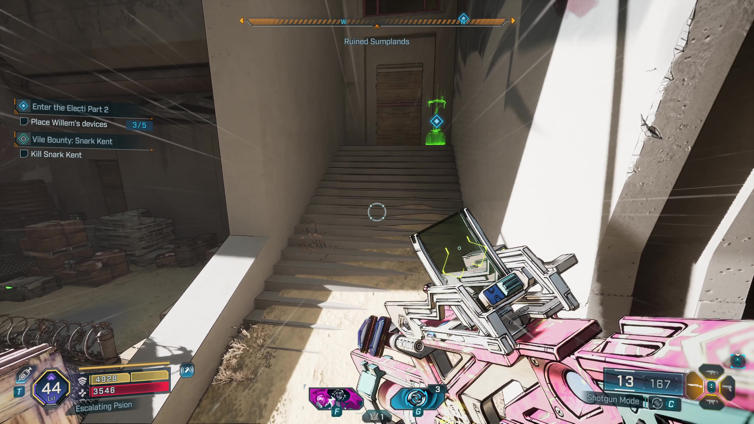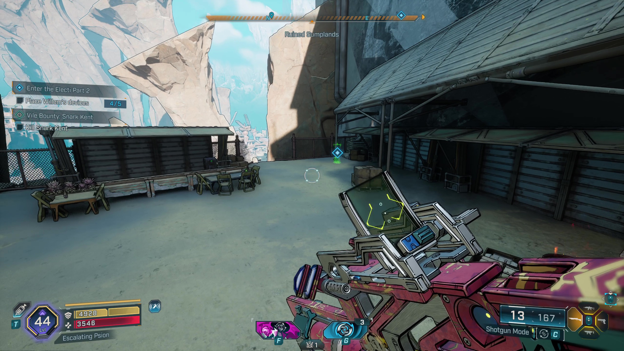 Хорошо, значит, оружие, которое мне нужно, теперь находится в дальнем северо-востоке Обгоревшей земли — туда я и направляюсь. Просто предупреждаю, мне нужно будет заглянуть к точке быстрого перемещения у моста возле лагеря Разрушителей, чтобы продвинуться в квесте, прежде чем я пойду.