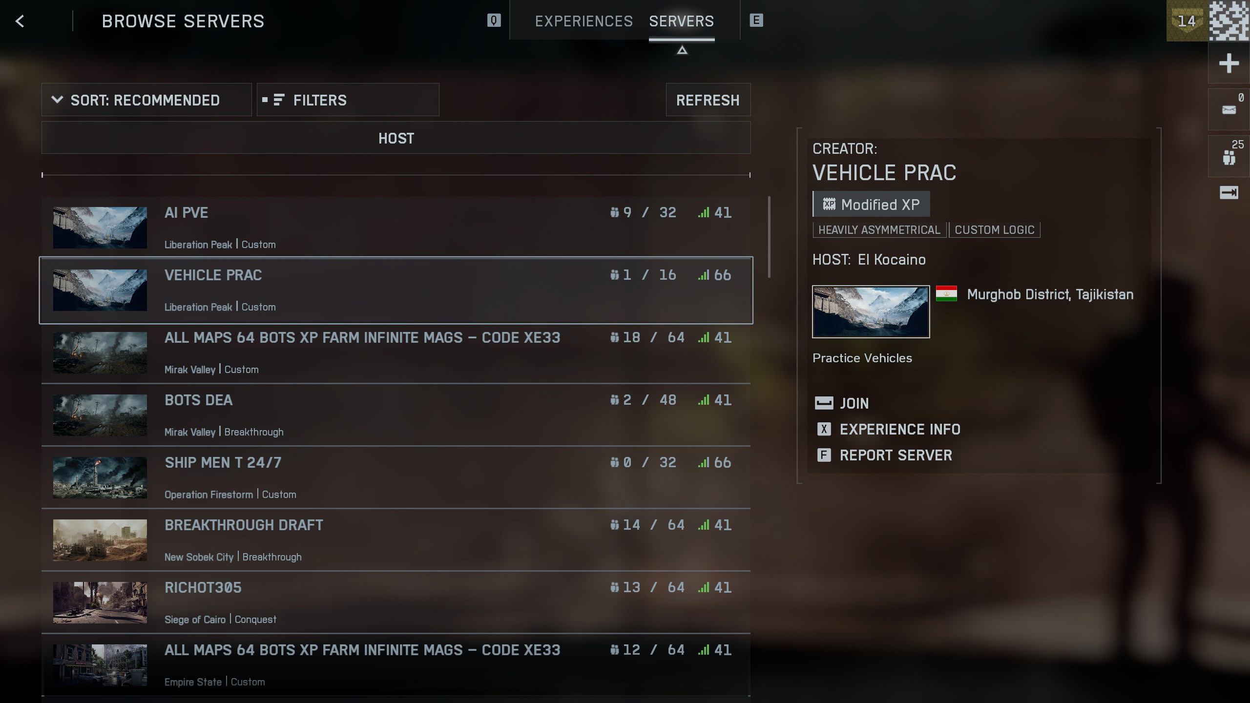 Лучший способ потренироваться — присоединиться к серверу примерно на 64 игрока, в идеале с небольшим количеством других игроков. Если сервер настроен правильно, боты займут остальные места. Затем вы сможете легко выбрать предпочитаемый класс и транспортное средство, чтобы начать тренироваться.