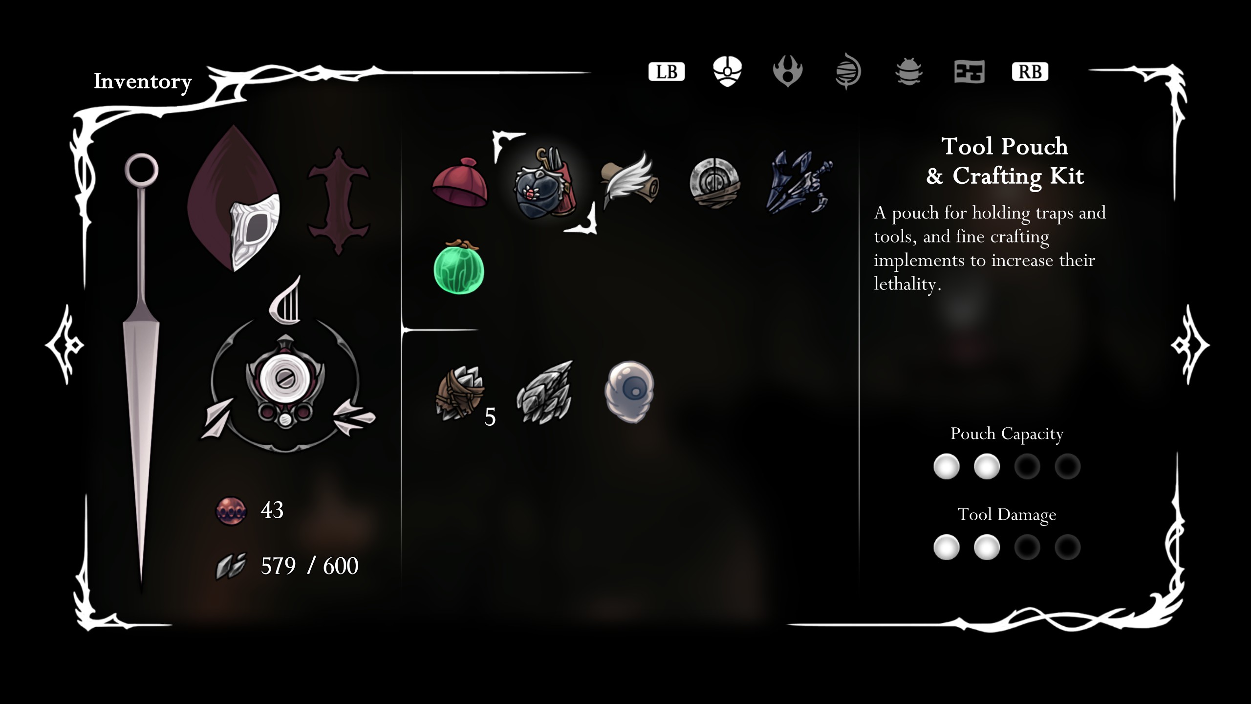 Ваш Мешочек для инструментов и Набор для крафта в Silksong определяют, сколько инструментов вы можете нести и насколько они эффективны. Хотя вы можете продвигаться по игре, не улучшая их, улучшение вашего Мешочка для инструментов и Набора для крафта значительно поможет при столкновении с сложными боссами и областями игры.