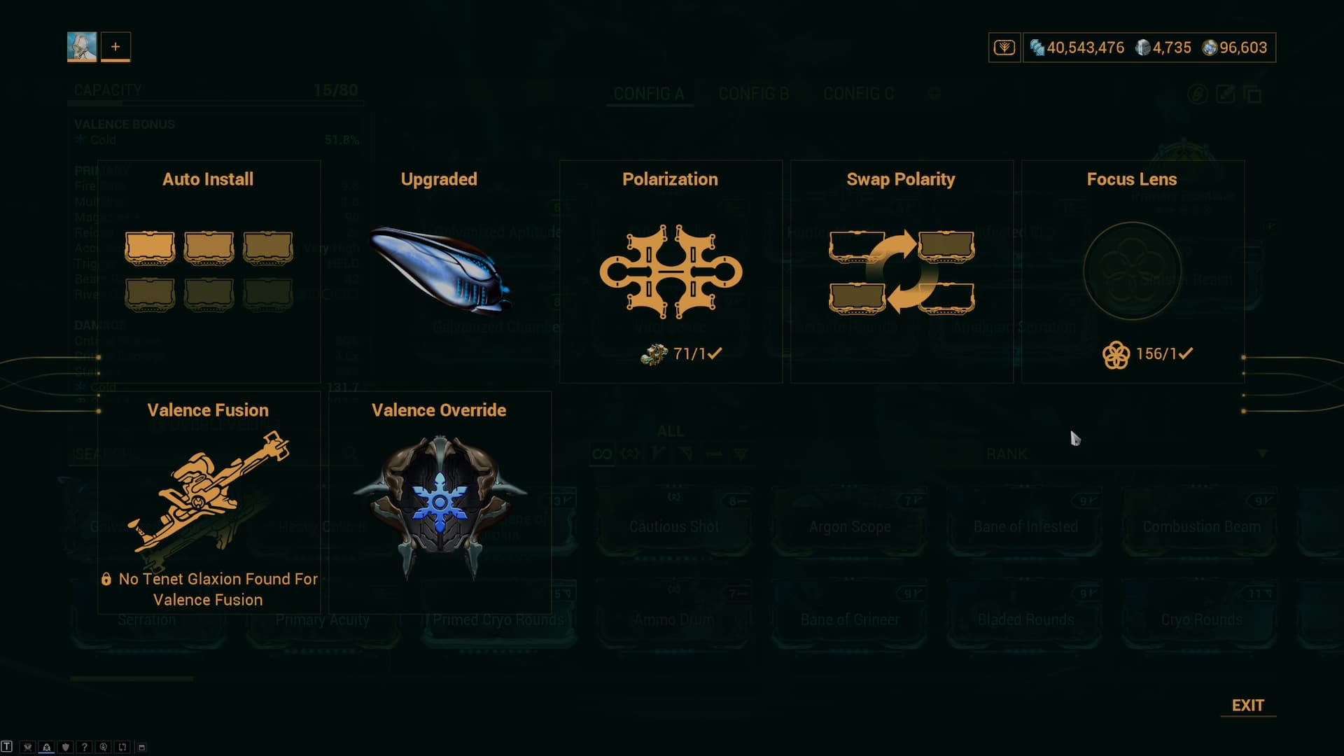- Greater Lens — Можно получить за выполнение наград 3-5 уровней на Заримане и в Sanctum Anatomica на Деймосе. Они преобразуют 3% дополнительной получаемой привязанности в очки Focus.