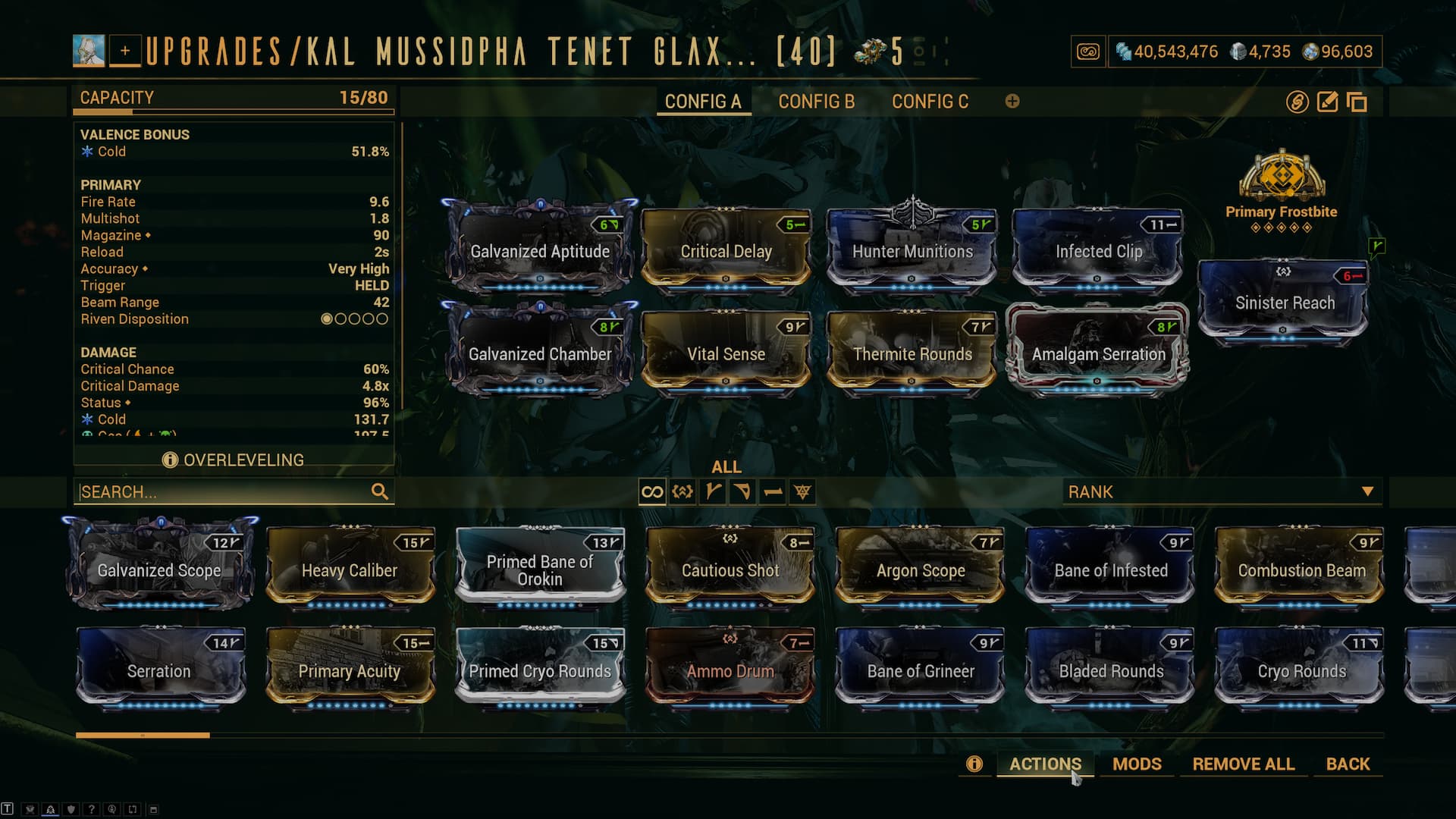 Чтобы установить Фокусную Линзу, сначала полностью улучшите оружие или Warframe. Затем откройте этот предмет в экране Экипировки или Arsenal. Наконец, нажмите кнопку ‘Actions’, расположенную в правом нижнем углу.