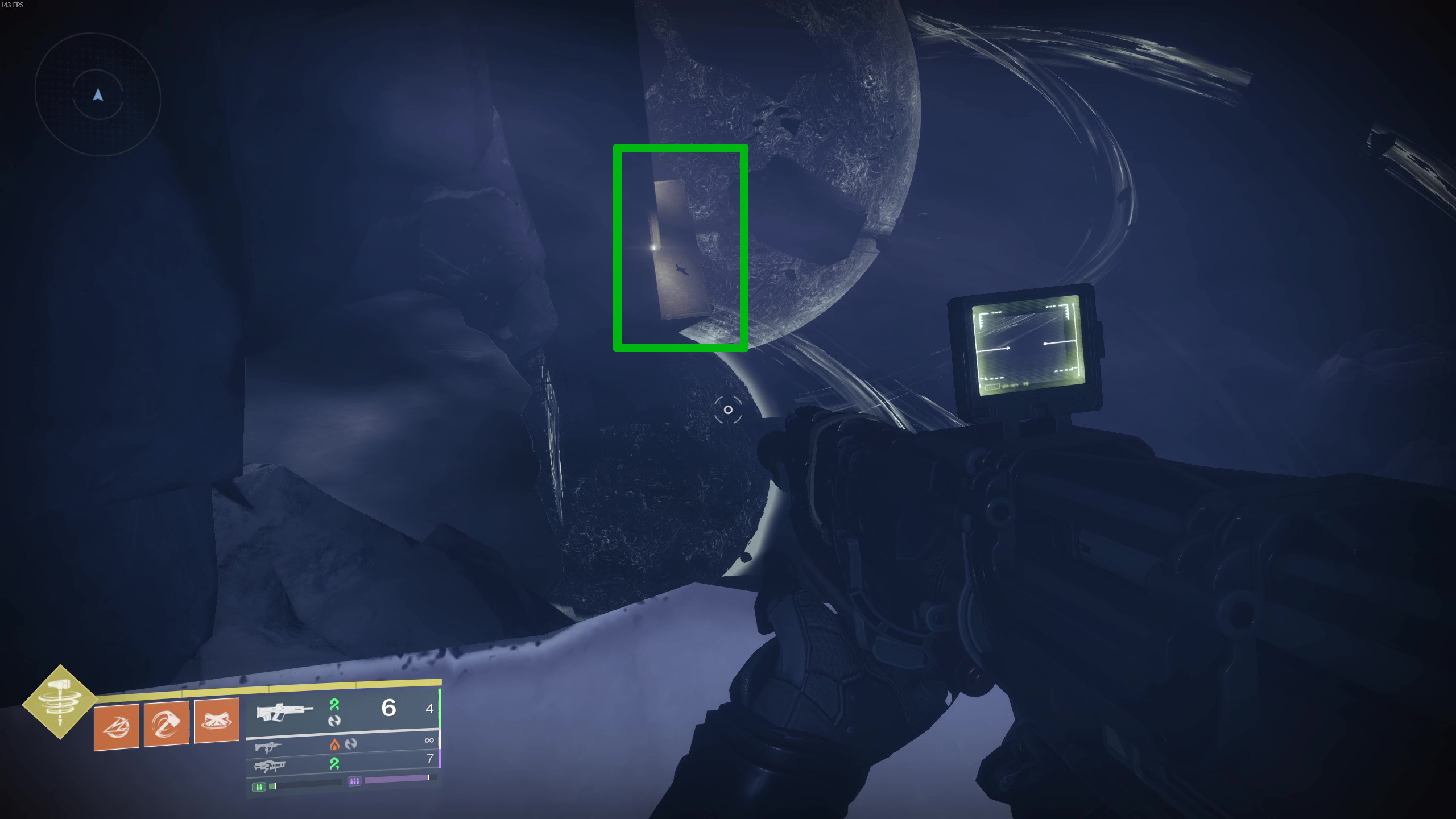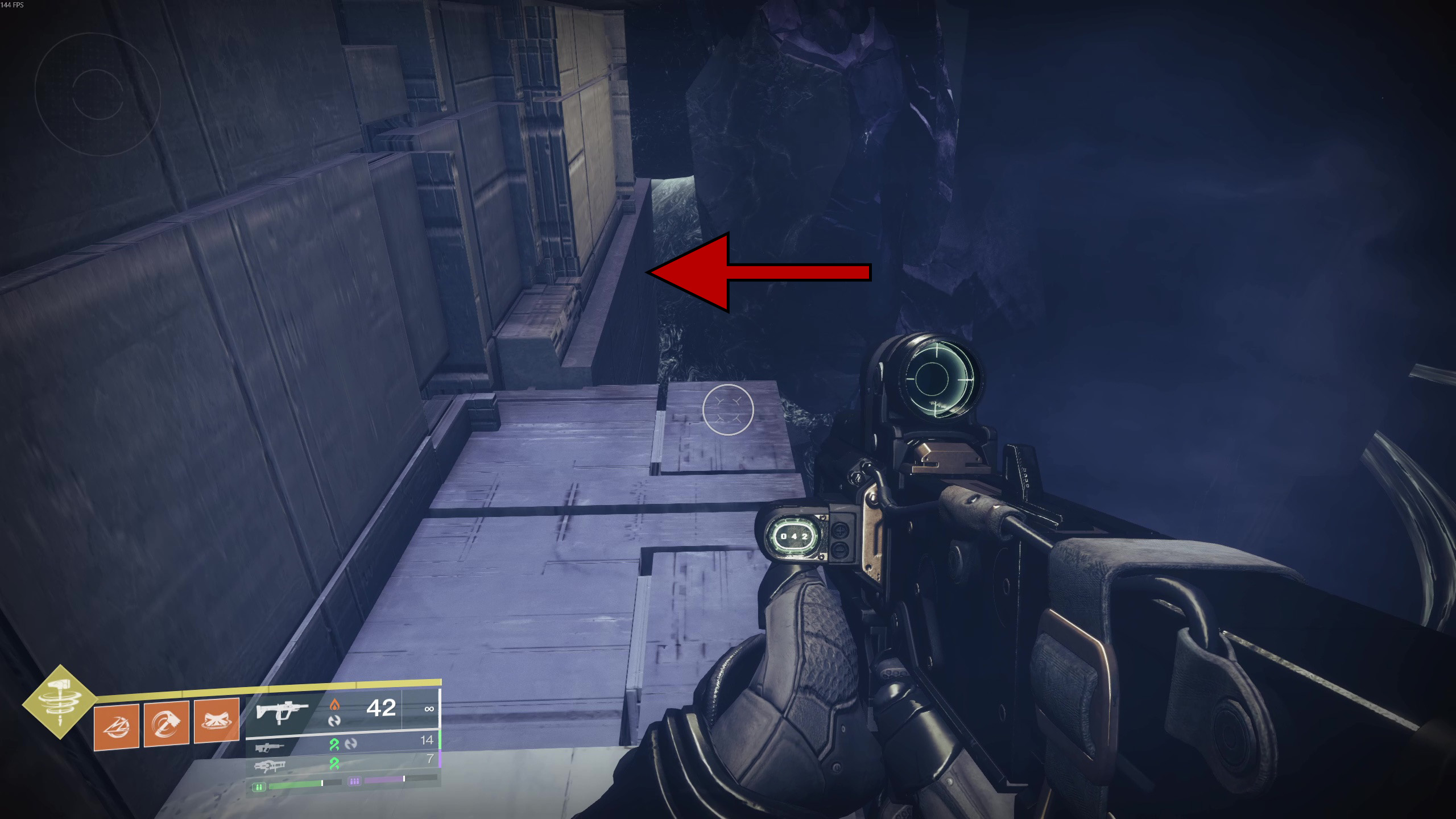 Преследуйте взрывающиеся бомбы Taken, пока они не откроют платформы, пока вы не достигнете стабильной земли. Затем найдите небольшое скальное образование, выступающее из ямы, и прыгните на него. Будьте осторожны при перемещении – щиты врагов Taken Phalanx могут сбить вас в яму, если вы не будете внимательны.
