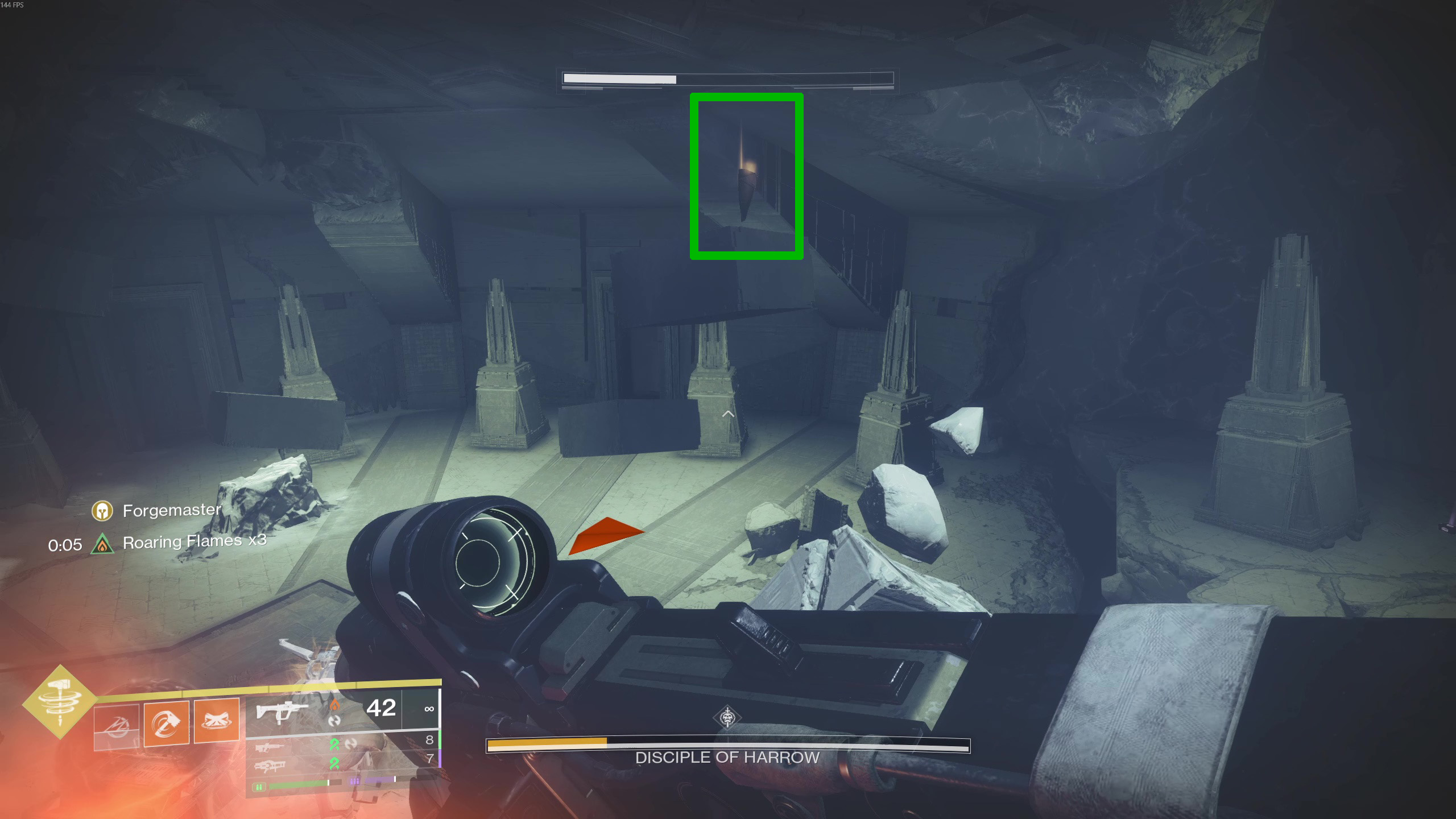 Правая сторона арены удерживается врагами, захваченными Тьмой, включая двух оранжевых изрубленных центурионов Тьмы, расположенных под энергетическими полями. На левой стороне вы найдете силы Кабал, с двумя похожими оранжевыми изрубленными центурионами Империи, также укрытыми энергетическими полями.
