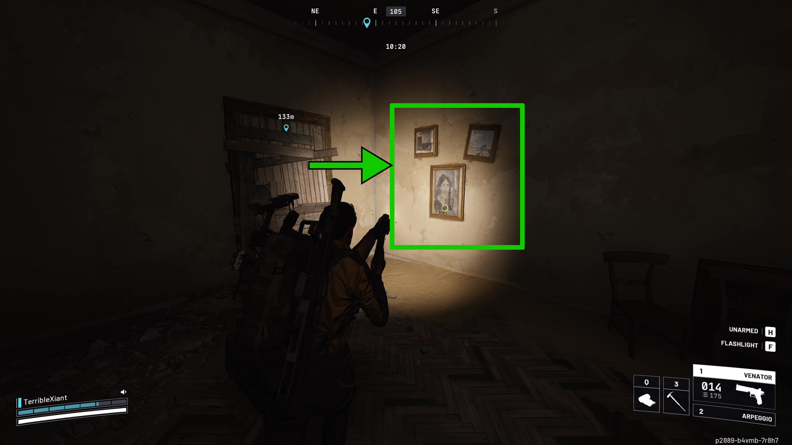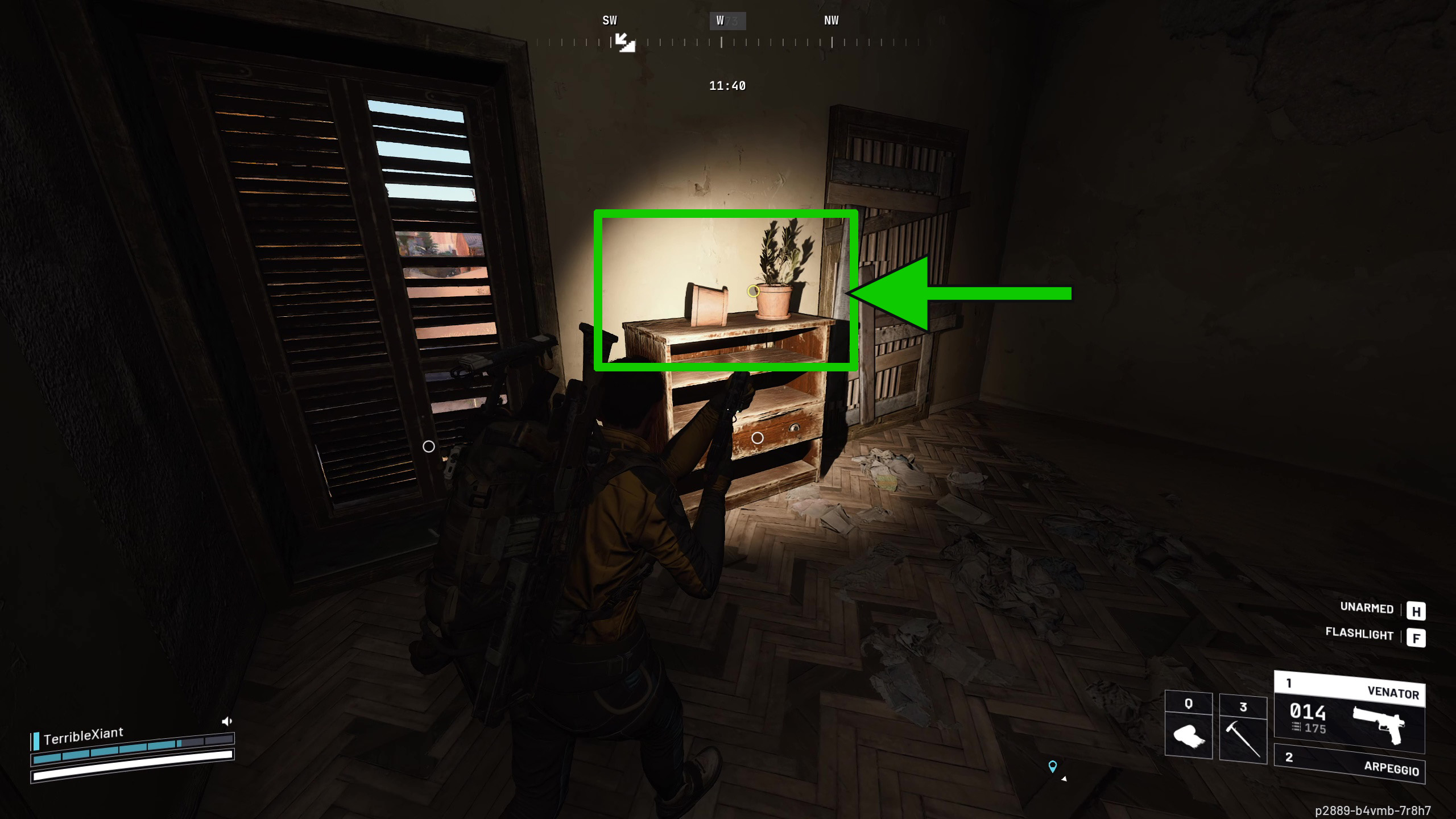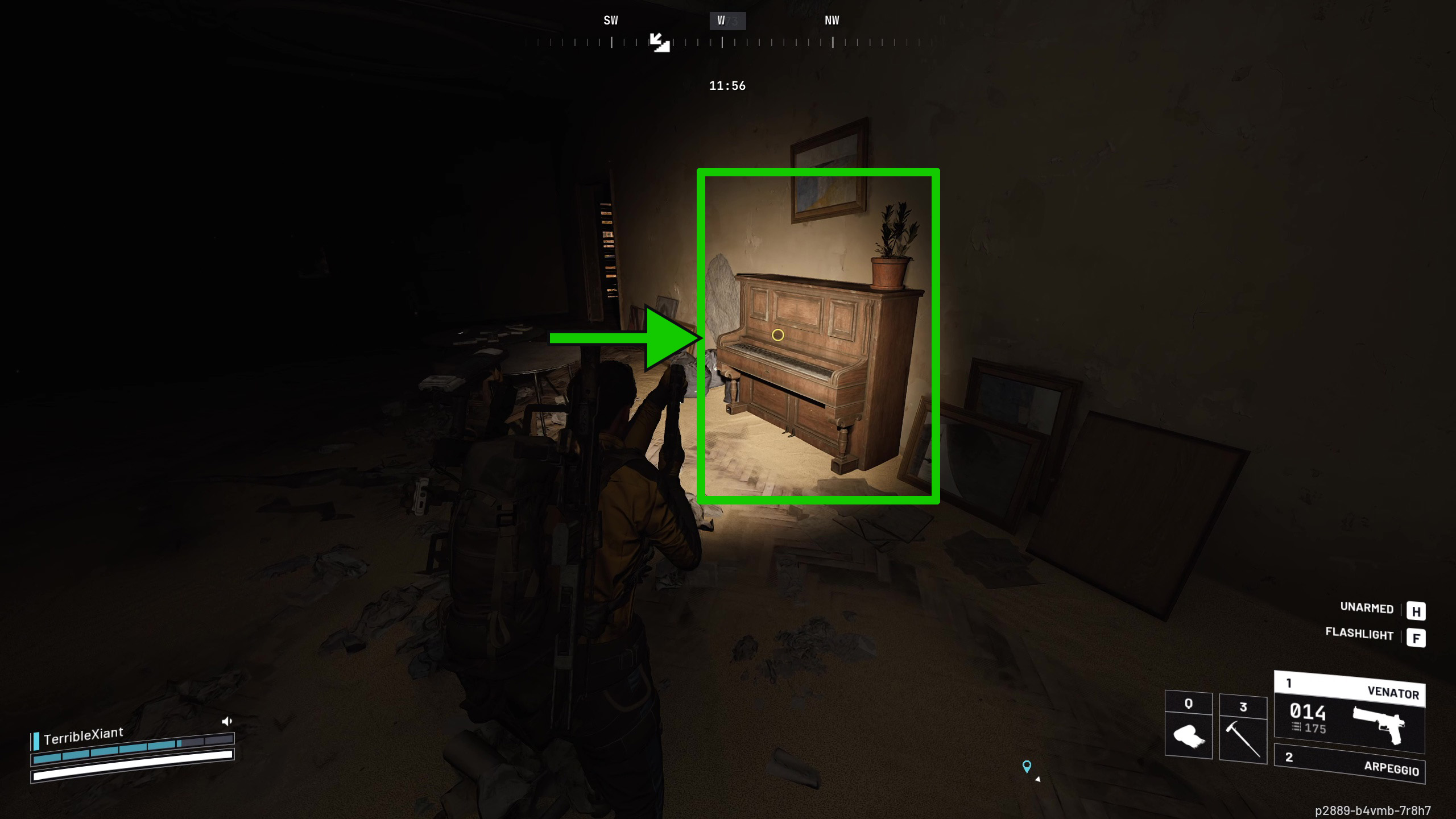 Окей, так я выбил переднюю дверь и быстро схватил всё полезное, что нашёл на полках. Затем я направился наверх. Важные вещи – четыре предмета, которые мне нужно сфотографировать – все находятся в гостиной, которая в задней части магазина. Хорошая новость в том, что мне не нужно было помнить о камере! Каждый раз, когда я взаимодействую с одним из этих мест, мой Raider автоматически достаёт её. Это значительно упрощает задачу.