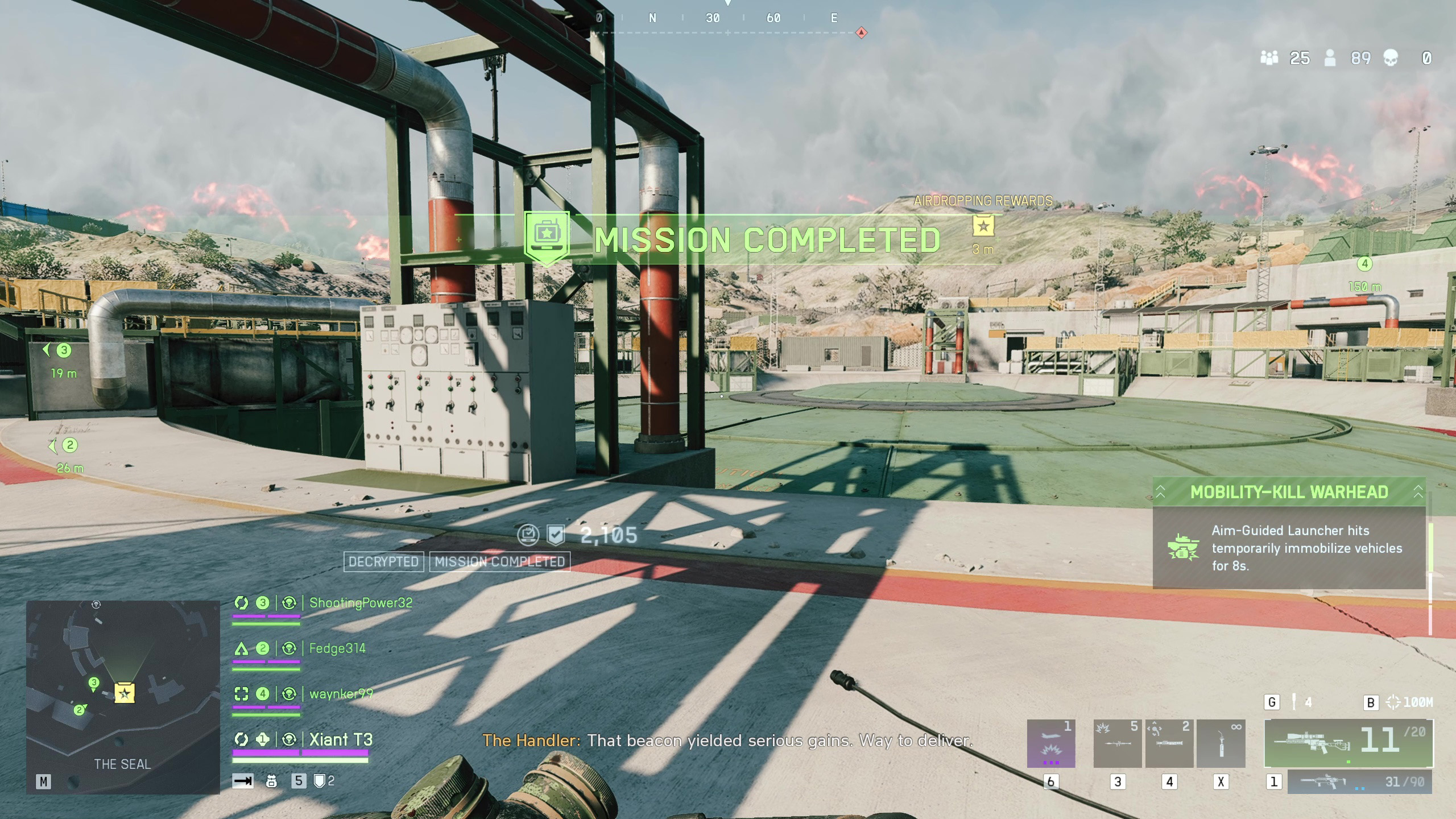 После того, как вы и ваш товарищ по команде закончите расшифровку обоих маяков, вы получите награду за выполнение задания – выпадение лута, которое прибудет вскоре после появления экрана завершения задания.