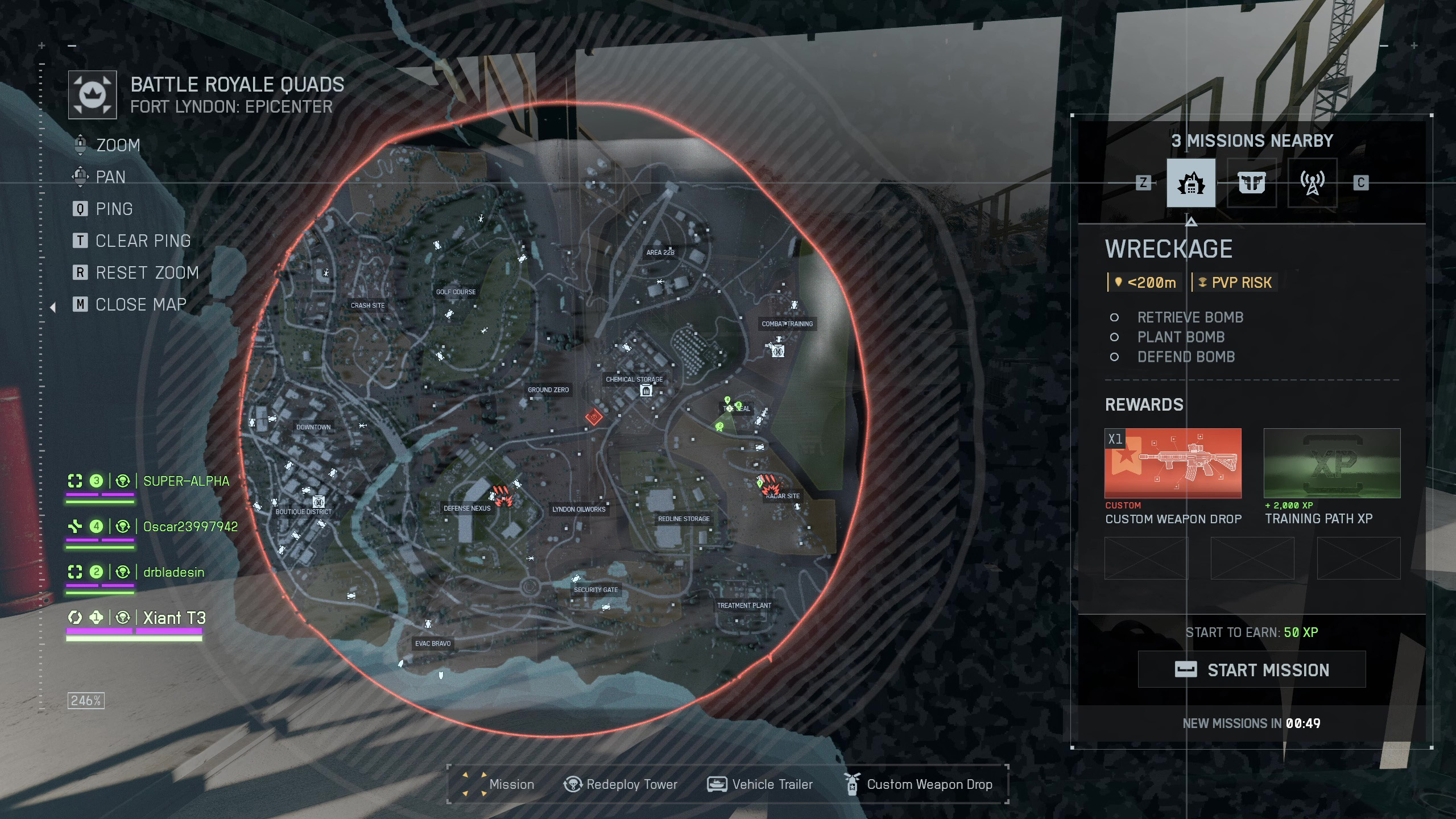 Как только миссия начнется, ваш HUD покажет вам, где забрать бомбу и M-COM станцию. Будьте осторожны, хотя – области с обломками часто привлекают других игроков, ищущих сражения. Также, вражеские команды могут видеть, когда приближается сброс снабжения с кастомным снаряжением издалека, поэтому ожидайте потенциального боя, когда вы пойдете его забрать.