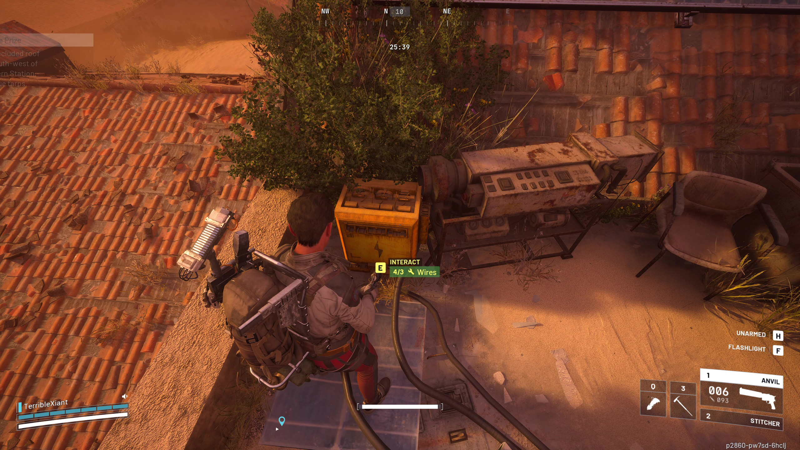 Окей, я нашёл жёлтый ящик питания – он находится слева от террасы. Если у меня есть три Провода, я могу завершить это задание прямо здесь, что просто отлично! Но, упс, их у меня нет! Похоже, мне придётся побегать по карте и найти какой-нибудь электронный хлам, чтобы разобрать его, пока я не получу достаточно Проводов. Надеюсь, это не займёт слишком много времени!