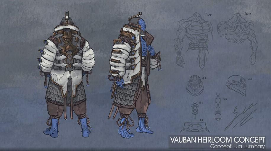 Я был так взволнован, когда впервые показали Heirloom Vauban в прошлом году! Изначальный дизайн на самом деле был создан очень талантливым художником из сообщества Warframe, Lua_Luminary, и здорово видеть, как он развился во внешний вид, который мы видим сейчас. Глядя на него, он определенно соответствует стилю других Heirlooms, которые мы получили для Mag и Frost, и это мне нравится!
