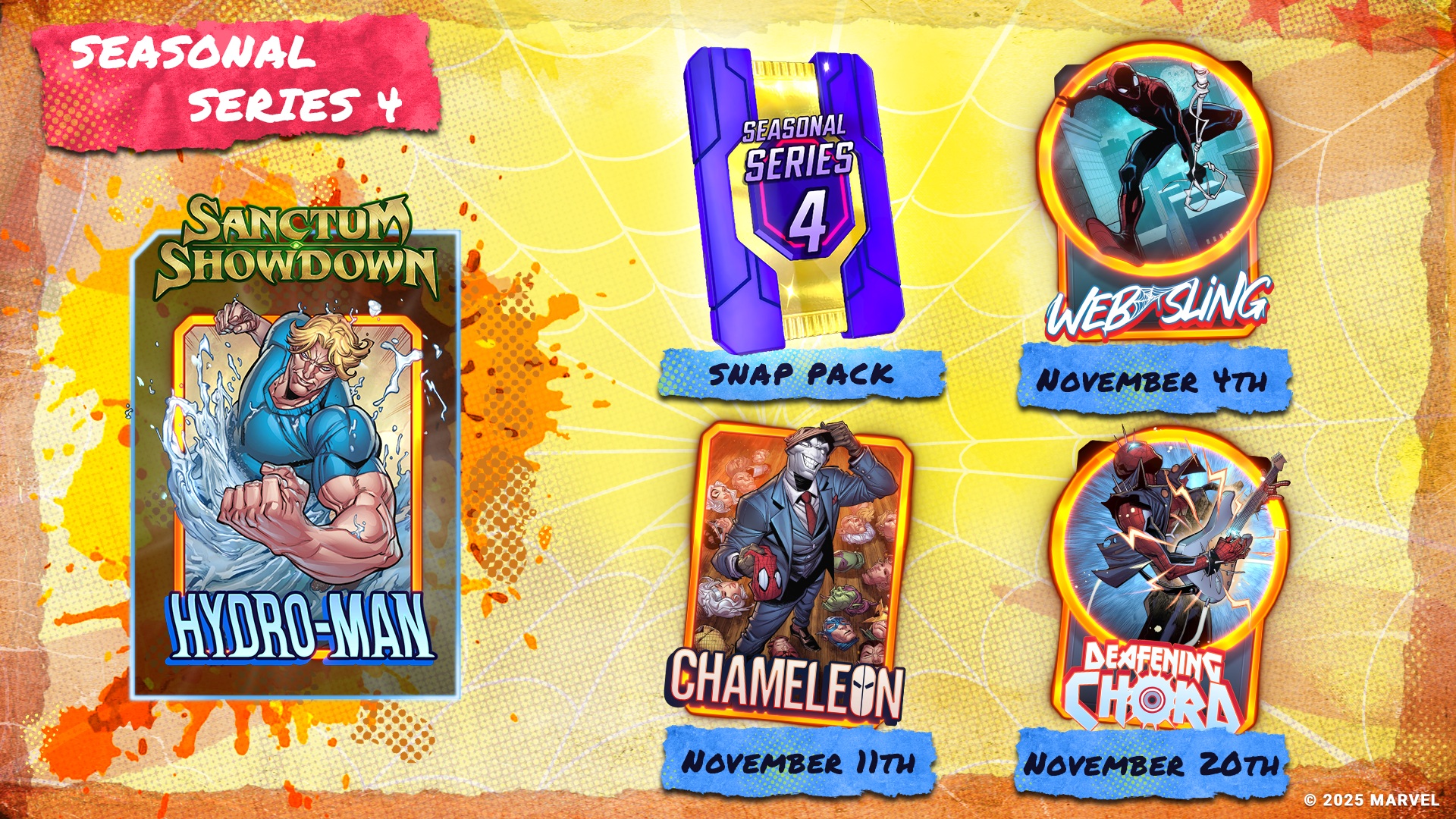 Я так взволнован! Четыре новые карты появятся в Магазине коллекционера – вы можете получить Chameleon, Deafening Chord и Web Sling в Snap Packs. Кроме того, они возвращают Sanctum Showdown, и вы можете заработать Hydro-Man, играя в него! Будет насыщенная неделя, пополняющая мою коллекцию.