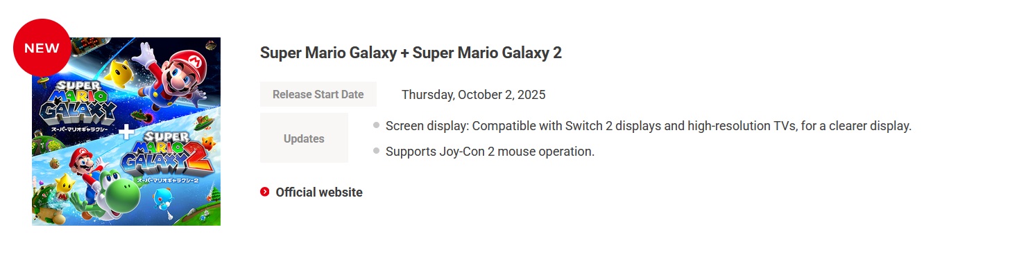 Nintendo подтвердила, что версия Super Mario Galaxy и Super Mario Galaxy 2 для Switch 2 будет поддерживать управление мышью. Эта информация была опубликована на японском веб-сайте Nintendo, который также сообщает, что обновленные версии будут отличаться графикой более высокого разрешения.