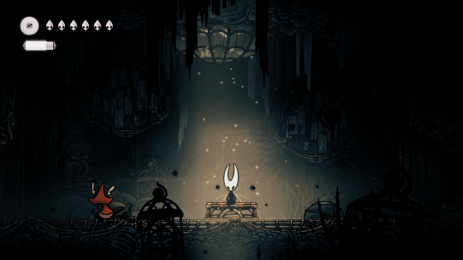 Hollow Knight: Silksong начинается с того, что Hornet, ключевой персонаж из первой игры, оказывается в опасной ситуации. Её захватил культ, который отнял её силы и готовился отправить в клетке. К счастью, стечение обстоятельств даёт ей достаточно сил, чтобы сбежать, и она падает на дно земли под названием Pharloom. Вскоре мы узнаём две важные вещи: паломники взбираются на Pharloom, надеясь достичь священного места под названием Цитадель, и странная нить покрывает землю, сводя с ума всех жуков — как диких, так и разумных — и заставляя их нападать друг на друга.