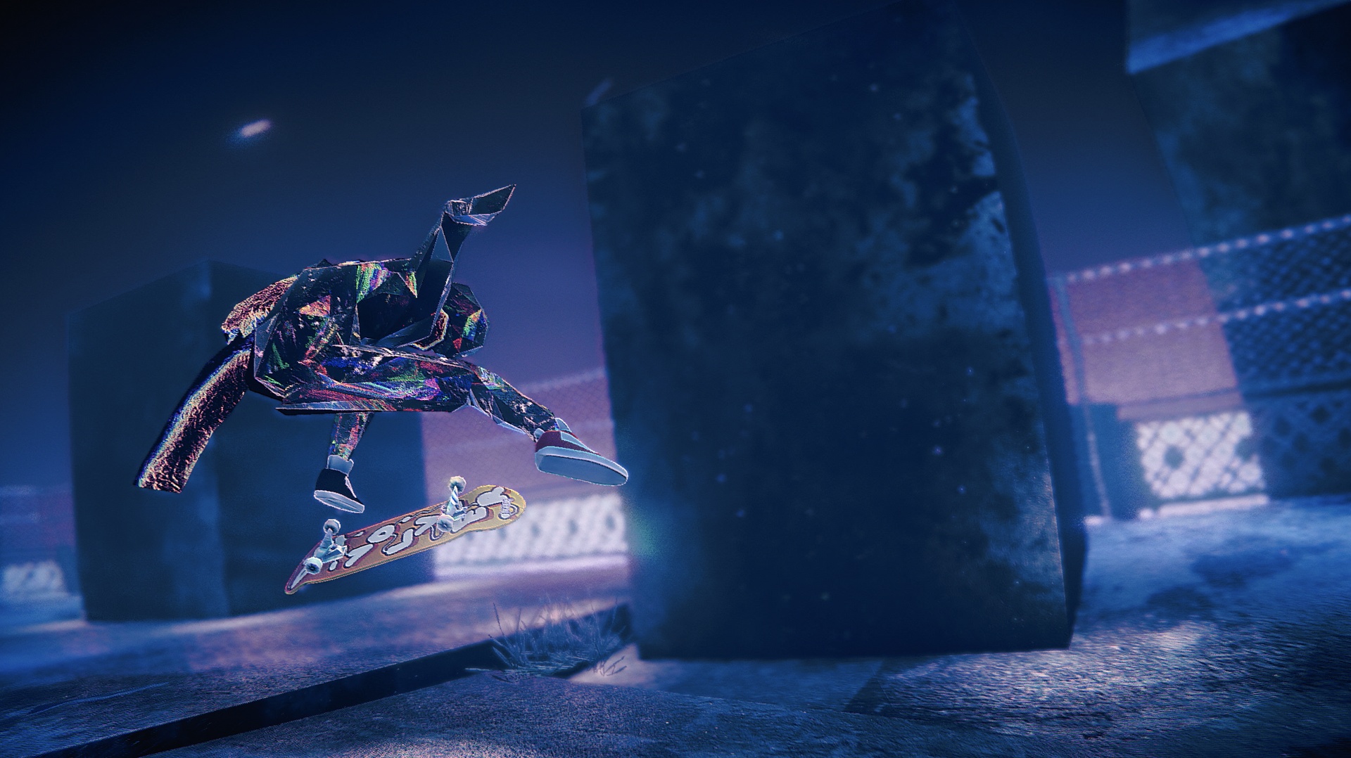 Во время одной из миссий я неожиданно оказался внутри огромного говорящего мусорного мешка, пока искал поддельную карту метро, называемую Millicard. Дизайн игры позволяет игрокам кататься на скейтборде по невероятно большим и разнообразным локациям. Вы будете быстро перемещаться между различными областями, используя специальные ворота, что сохраняет игровой процесс захватывающим и подчеркивает радость от катания на скейтборде.