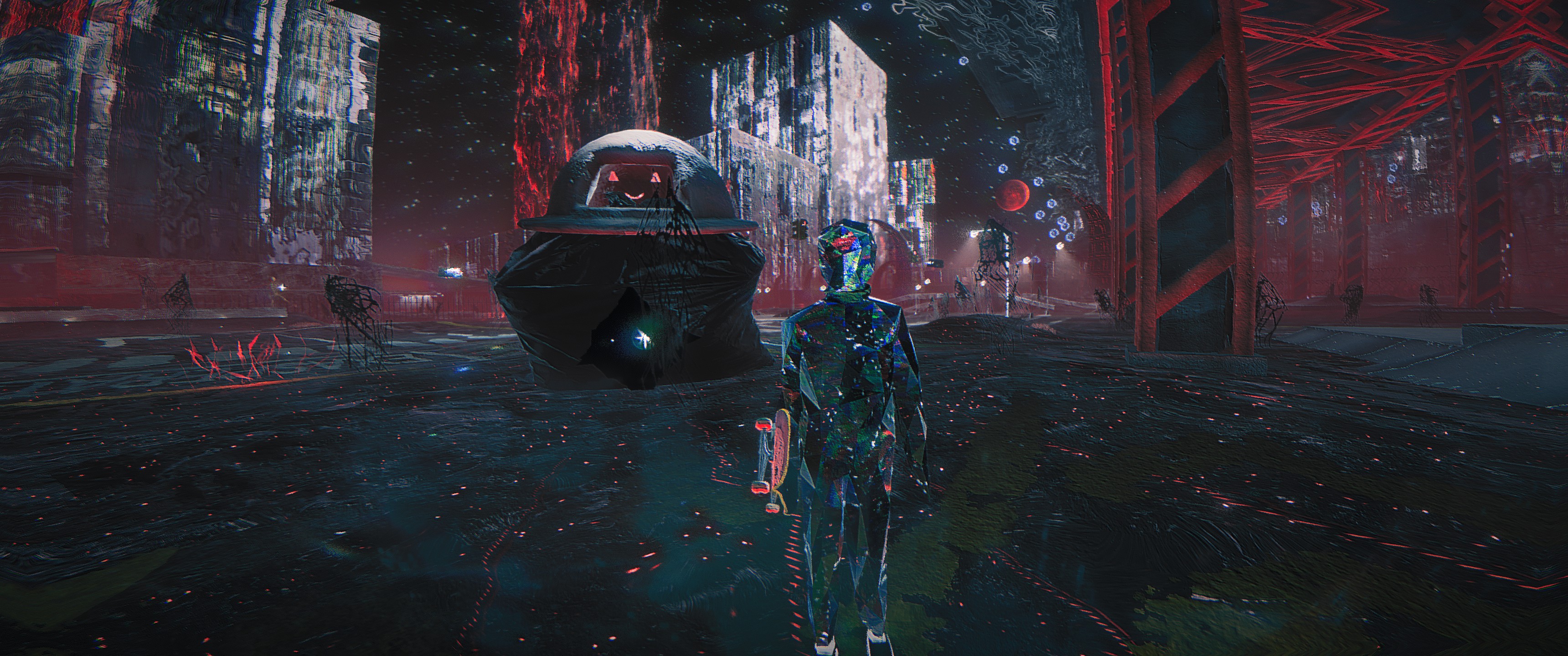 Одно из того, что я абсолютно люблю в Skate Story, это то, как игра заставляет мир ощущаться намного больше, чем он есть на самом деле. Удивительно, как ты можешь войти в одну область, поболтать с кем-то, а затем вдруг оказываешься совершенно в новом месте – это происходит постоянно, и это действительно добавляет впечатлений!