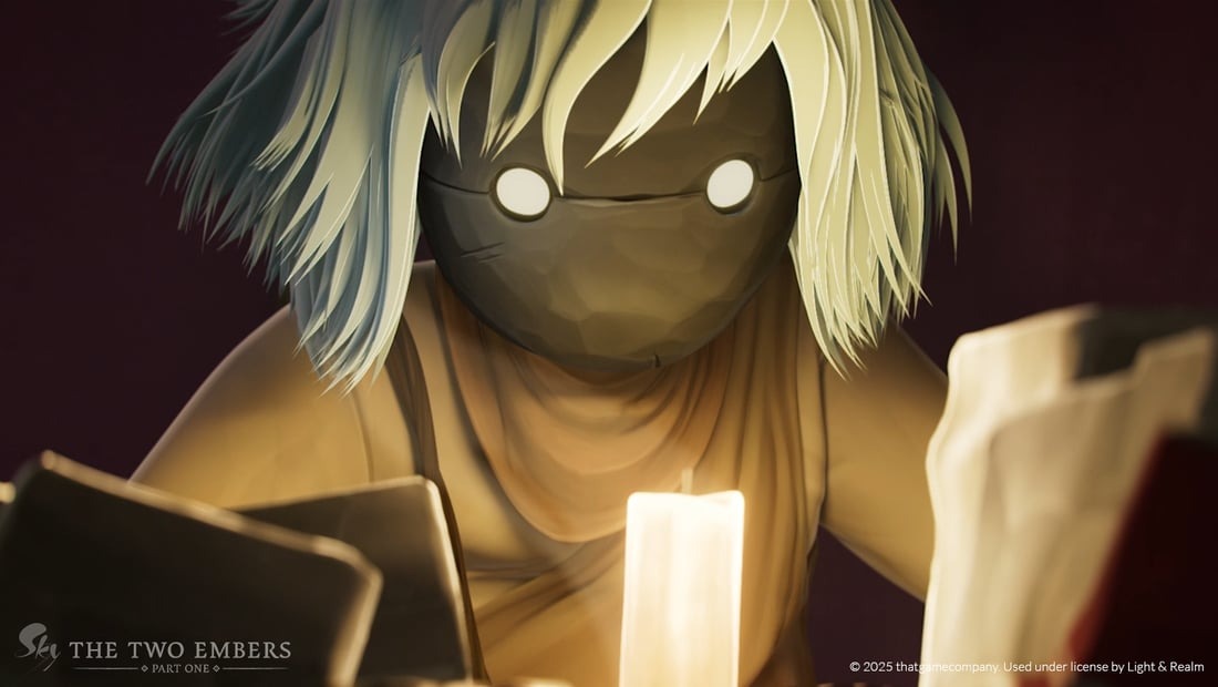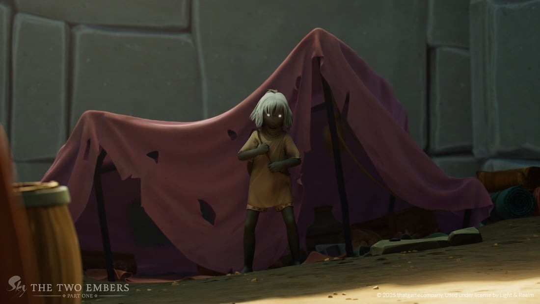 Смотря первую часть короткометражного фильма *Sky: The Two Embers*, я задумался о том, как помнить кого-то, не позволяя печали взять верх. Он основан на игре *Sky: Children of the Light*, в которую я играю с момента её выхода в 2019 году. Он полностью соответствует атмосфере игры, ведь свет – это то, как ты ориентируешься в мире. История рассказывает об этой маленькой девочке, которую часто называют «Ребёнок» или «Сирота». Она совершенно одна, и фильм показывает, как она учится справляться с миром без чьего-либо руководства.