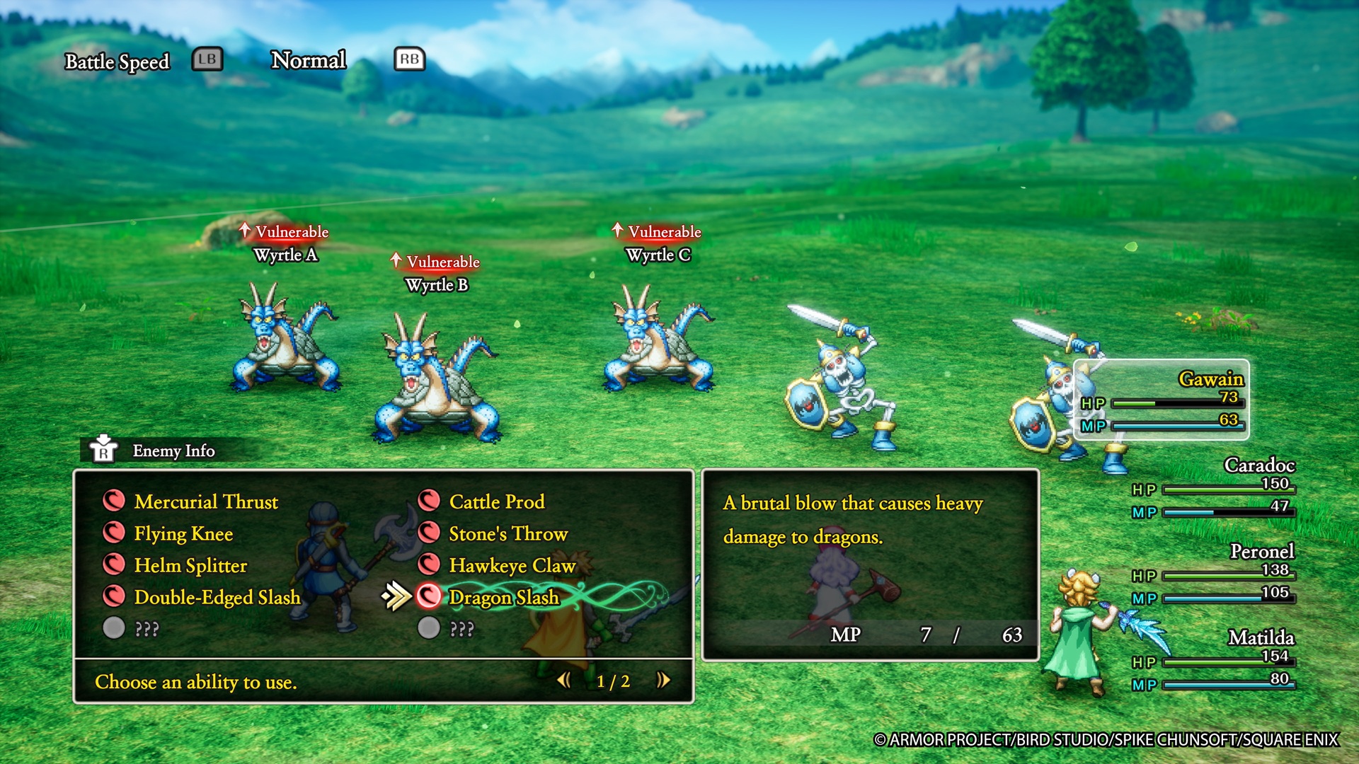 Значительные изменения также касаются состава команды в Dragon Quest 2. Эта демонстрационная версия представила возможность познакомить принцессу Каннока, нового персонажа для этой переработки, с боевой системой. Она оказалась полезным дополнением во время столкновений со слабыми монстрами, используя заклинания Frizz и Crack для одновременного уничтожения групп врагов. Тем не менее, хотя приятно иметь нового члена команды, и это немного облегчает задачу, это не уменьшает сложного испытания, которое игры DQ известны тем, что предлагают. Сражения с менее опасными зверями постепенно истощают ваши силы, и в конечном итоге ресурсы становятся скудными. К сожалению, эта демонстрация закончилась до достижения финального противостояния, в основном потому, что большая часть отряда уже была повержена до прибытия. Для тех, кто не знаком с играми Dragon Quest, возрождение членов команды — сложный процесс, который часто включает в себя повторное посещение более ранних локаций.